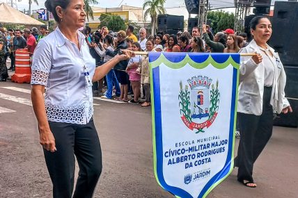 Paralelamente desenvolve o Projeto Escola Cívico-Militar na Escola Municipal Major Alberto Rodrigues da Costa a qual abriu o desfile da Policia Militar.