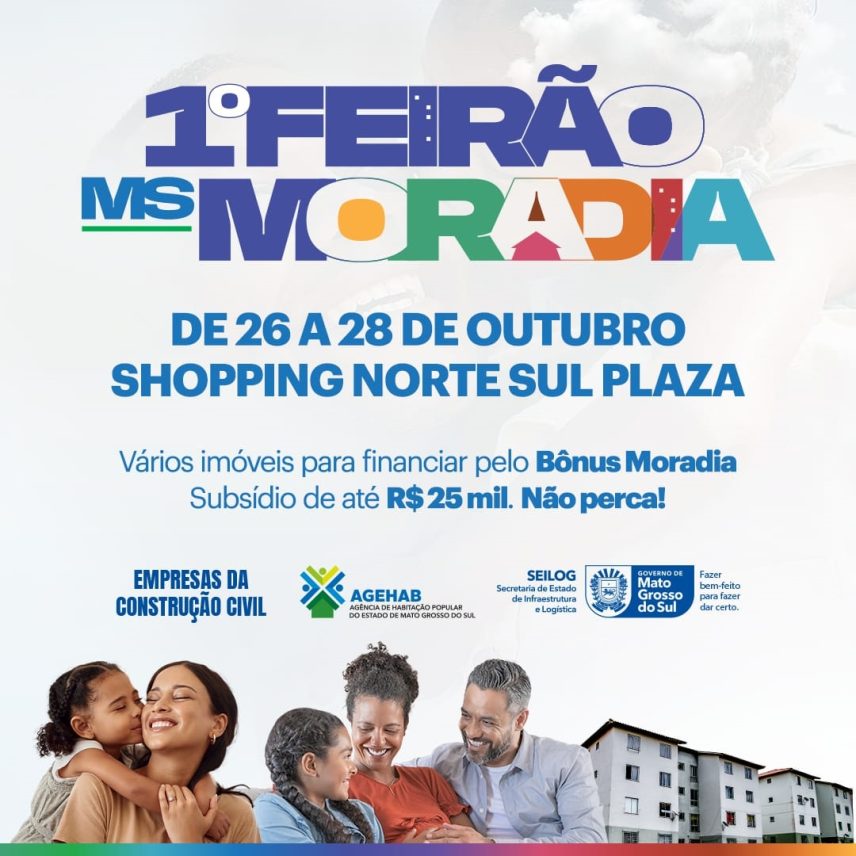 Campo Grande (MS) – Nos dias 26, 27 e 28 de outubro a Agehab (Agência de Habitação Popular), em parceria com empresas do setor imobiliário, promoverá o 1º Feirão MS Moradia com o intuito de divulgar o programa do Governo Estadual, ajudando assim as famílias a realizarem o sonho da casa própria. O evento será realizado das 10h às 22h no Shopping Norte e Sul.