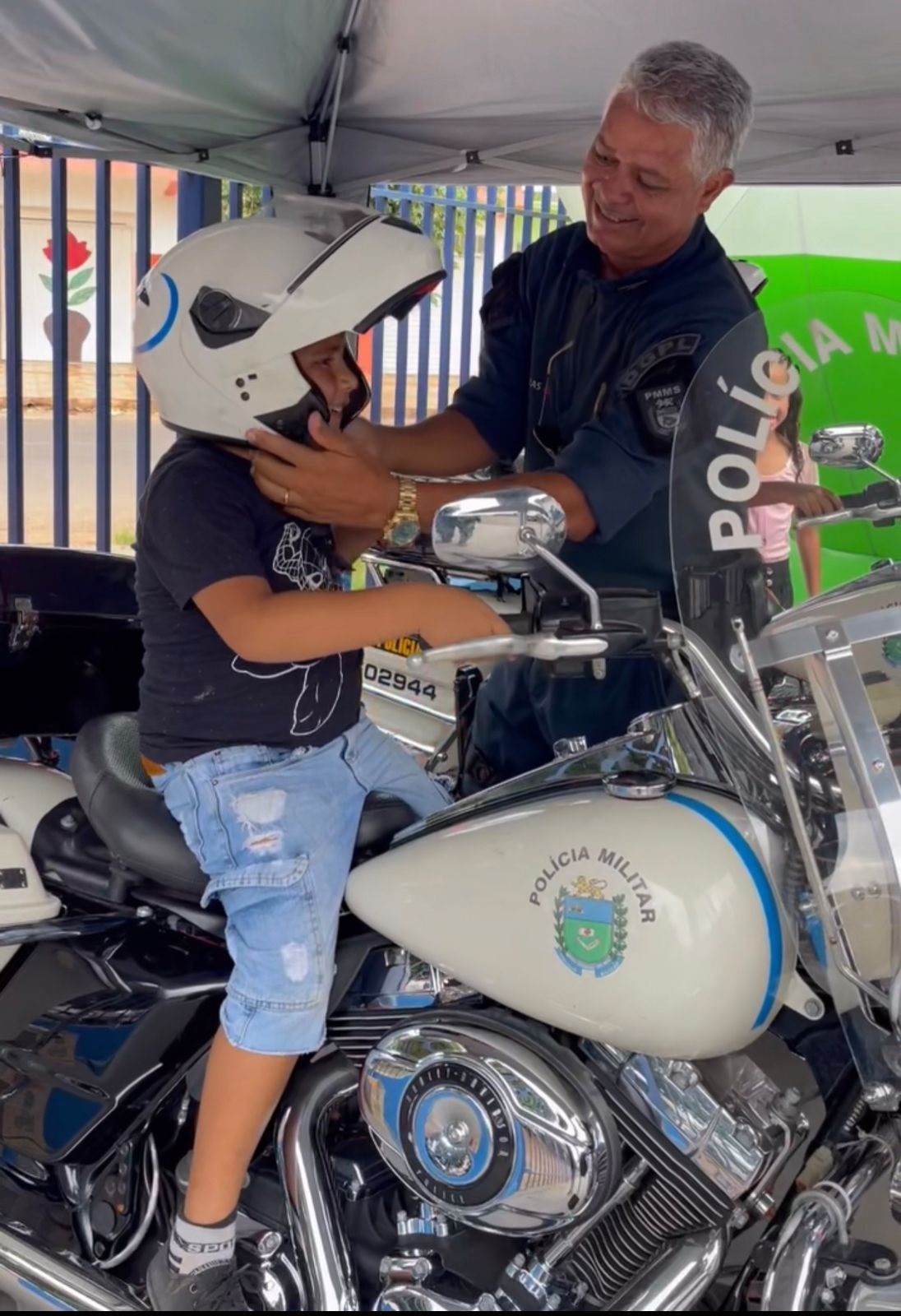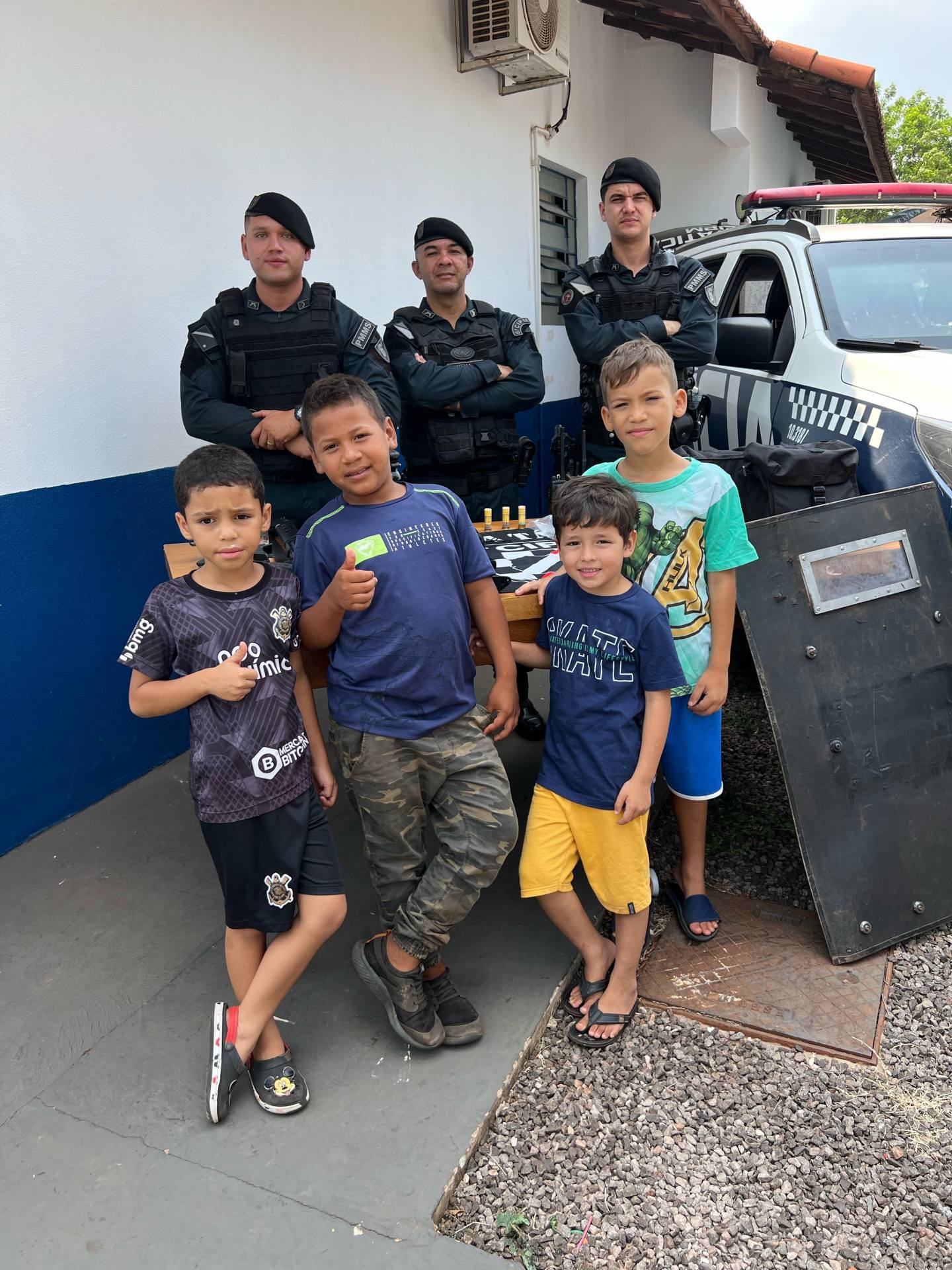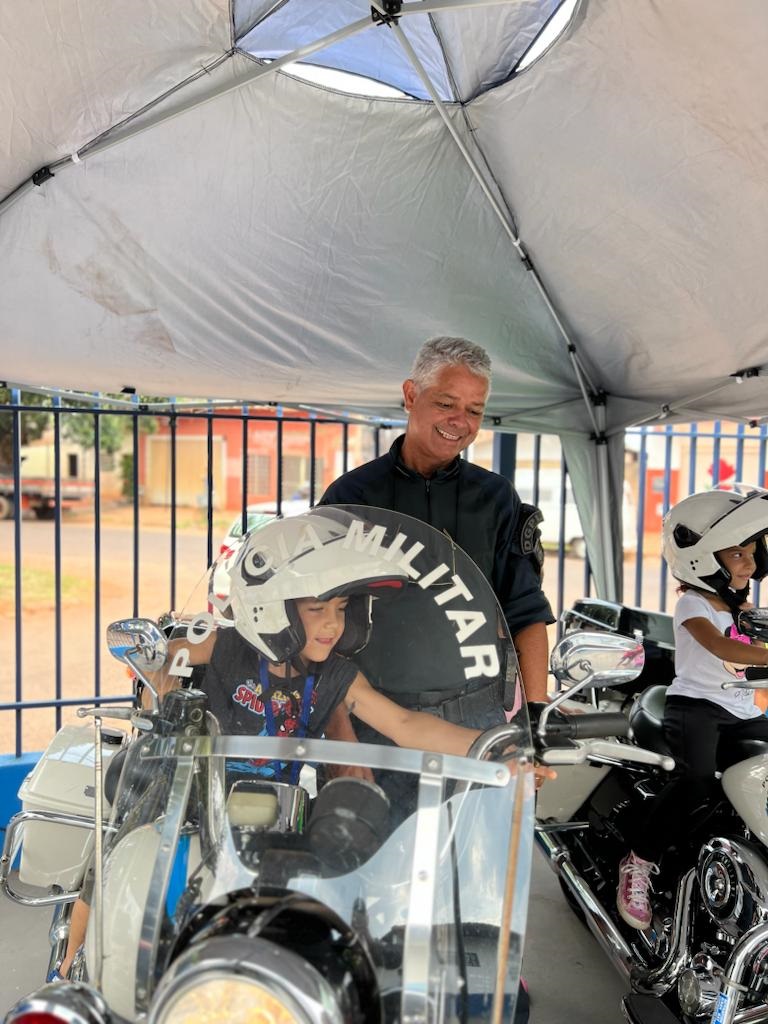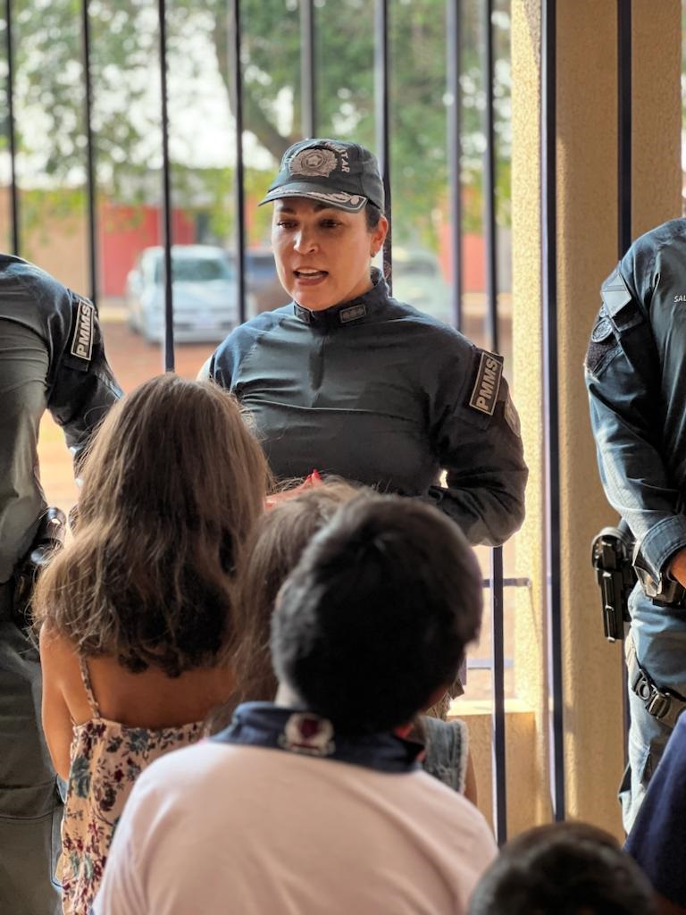 Uma turminha de 30 crianças entre 6 e 8 anos puderam visitar o quartel da Polícia Militar e interagir com os policiais militares, além de conhecer o trabalho realizado. Foram montados vários estandes educacionais com viaturas e todo o aparato da Força Tática, as motos históricas da PMMS com educação de trânsito.