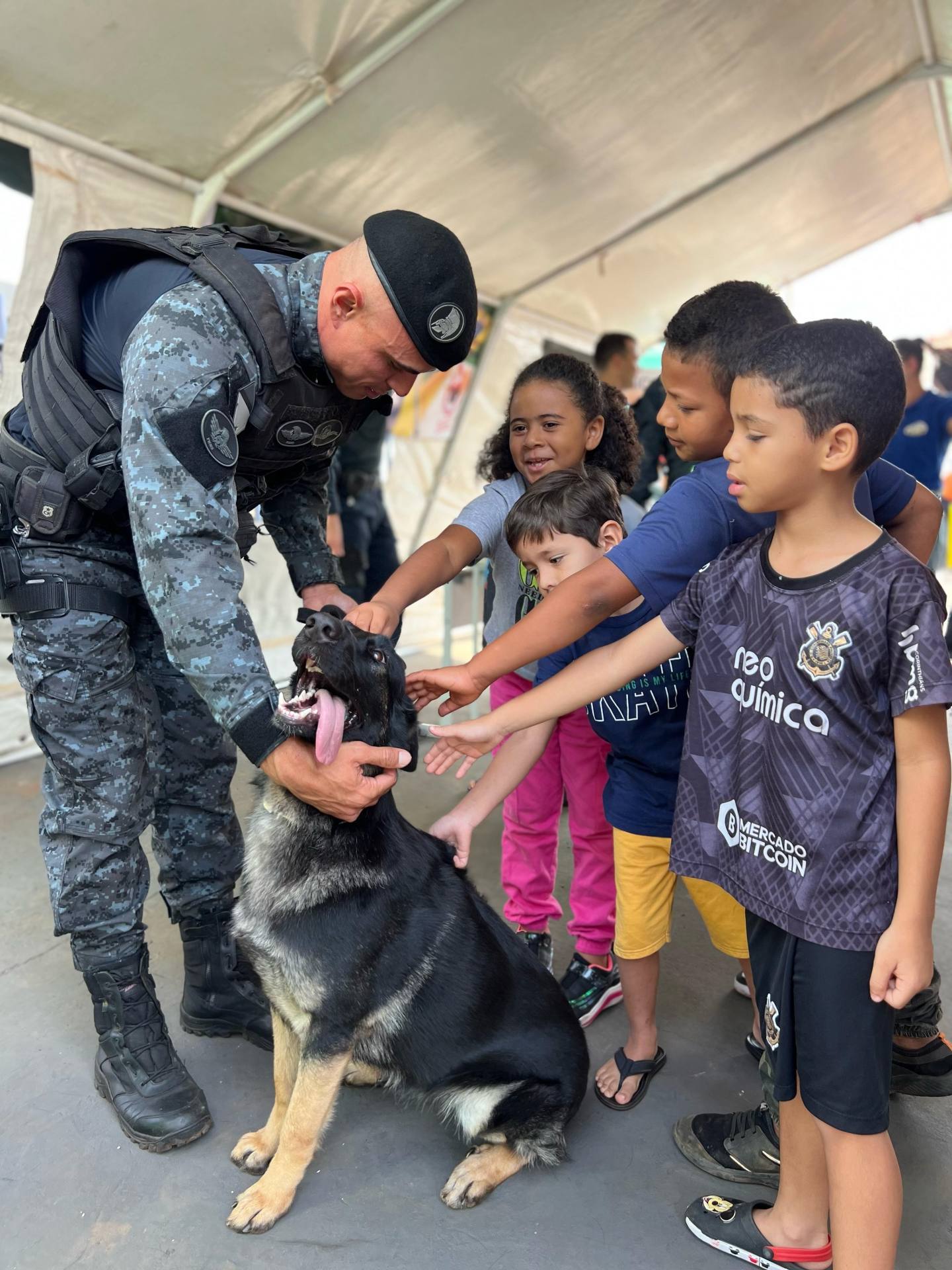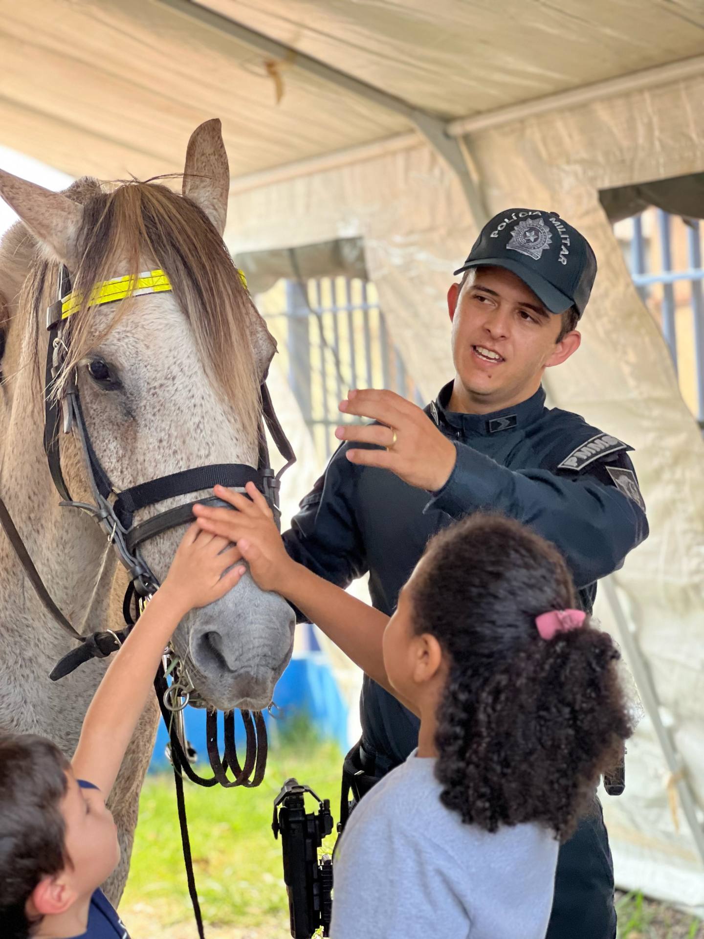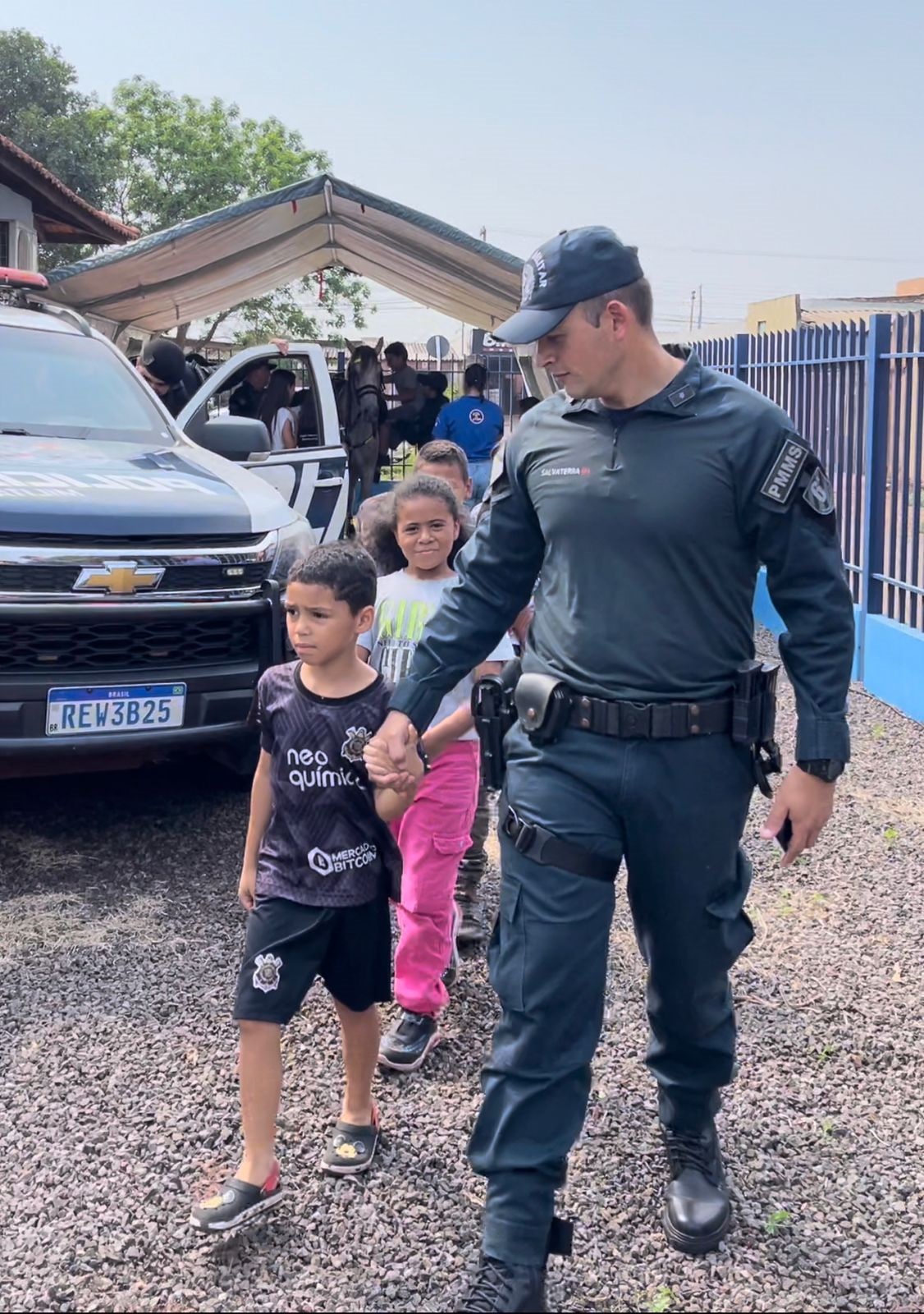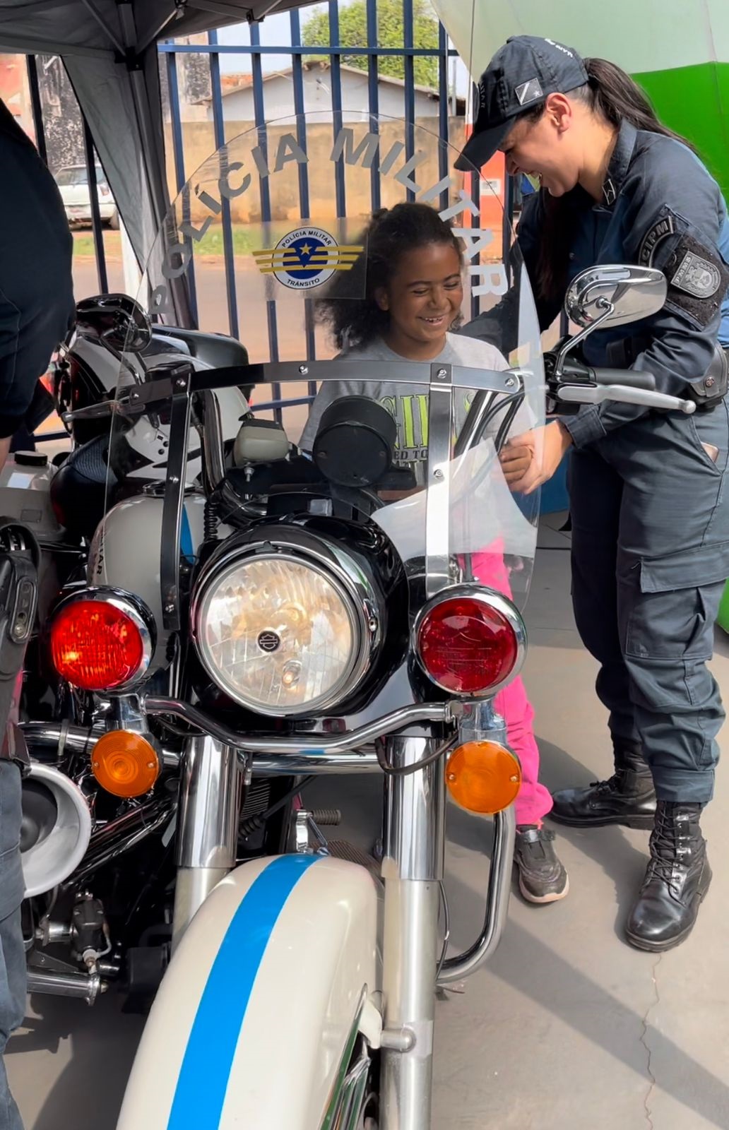 Uma turminha de 30 crianças entre 6 e 8 anos puderam visitar o quartel da Polícia Militar e interagir com os policiais militares, além de conhecer o trabalho realizado. Foram montados vários estandes educacionais com viaturas e todo o aparato da Força Tática, as motos históricas da PMMS com educação de trânsito.
