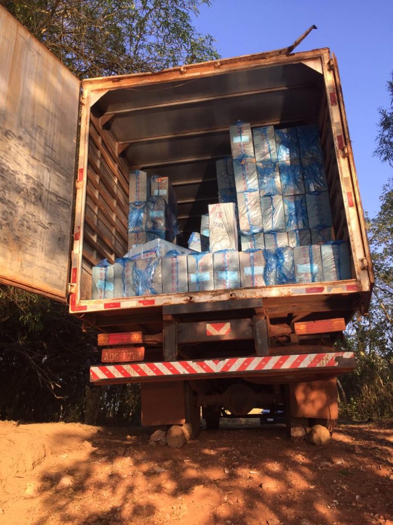 No local foram apreendidos 01 caminhão baú, 04 motocicletas, 01 caminhão com aproximadamente 3000 (três mil) litros de combustível que seriam utilizados para abastecimento das embarcações e aproximadamente 300 caixas de cigarros.