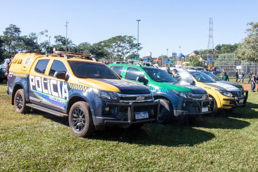 Os Comandantes-Gerais da Polícia Militar do Paraná, Coronel PM Sérgio Almir Teixeira, de São Paulo, Coronel PM Cássio Araújo de Freitas, acompanhado do Comandante-Geral da PMMS, Coronel PM Renato dos Anjos Garnes, estiveram presentes no lançamento da Operação Fronteiras e Divisas Integradas I, fortalecendo o trabalho em conjunto das forças de segurança.