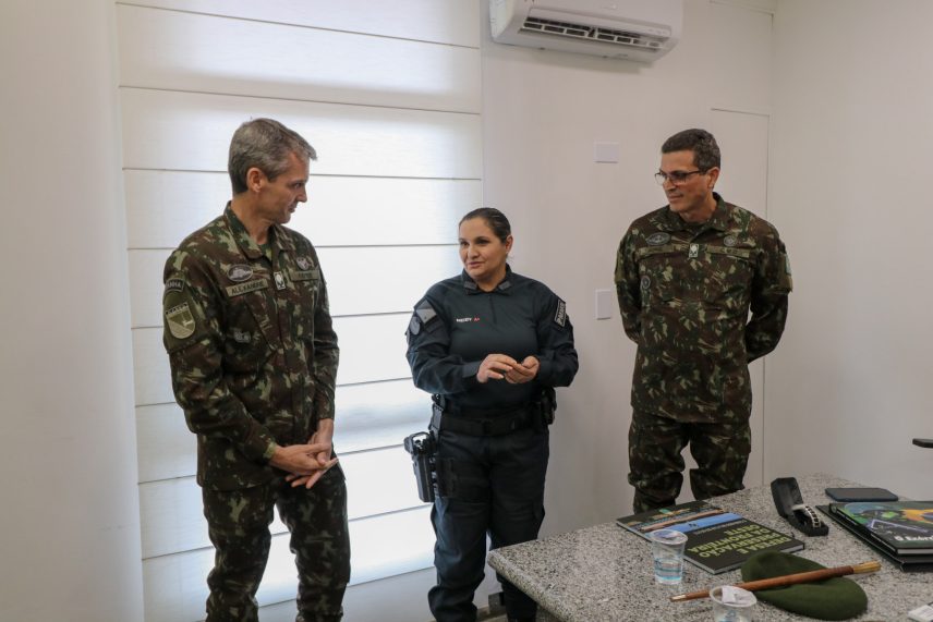 Campo Grande (MS) – Na manhã de hoje, o General de Brigada Combatente do Exército Brasileiro, Alexandre Ribeiro de Mendonça visitou o Quartel do Comando Geral da PMMS, acompanhado de sua equipe. Eles foram recebidos pela Subcomandante-Geral da PMMS, Coronel PM Neidy Nunes Barbosa Centurião e o Chefe do Estado-Maior-Geral da PMMS, Coronel PM Nivaldo de Pádua Melo.