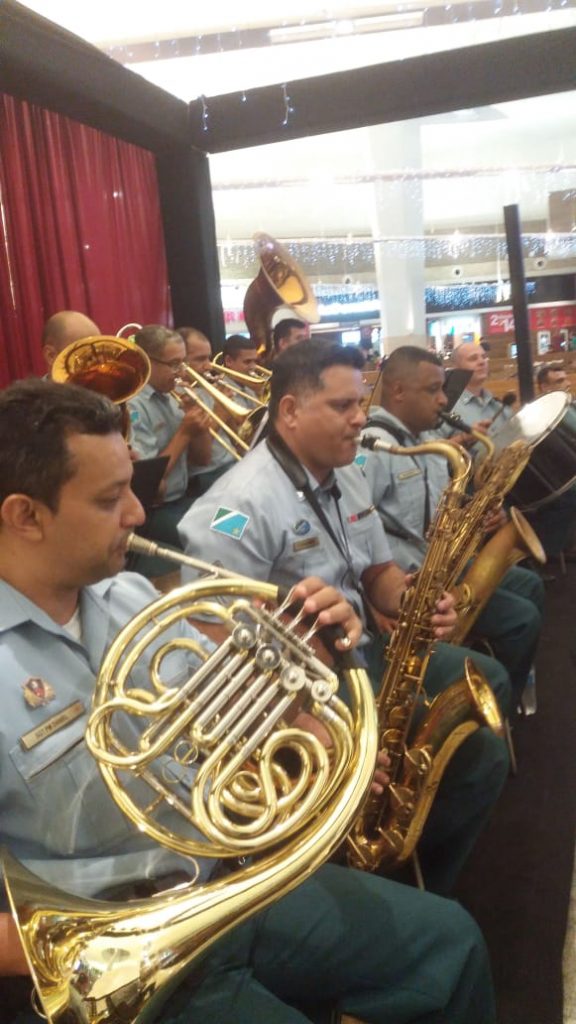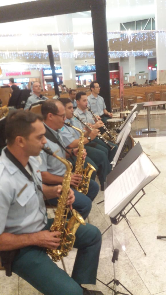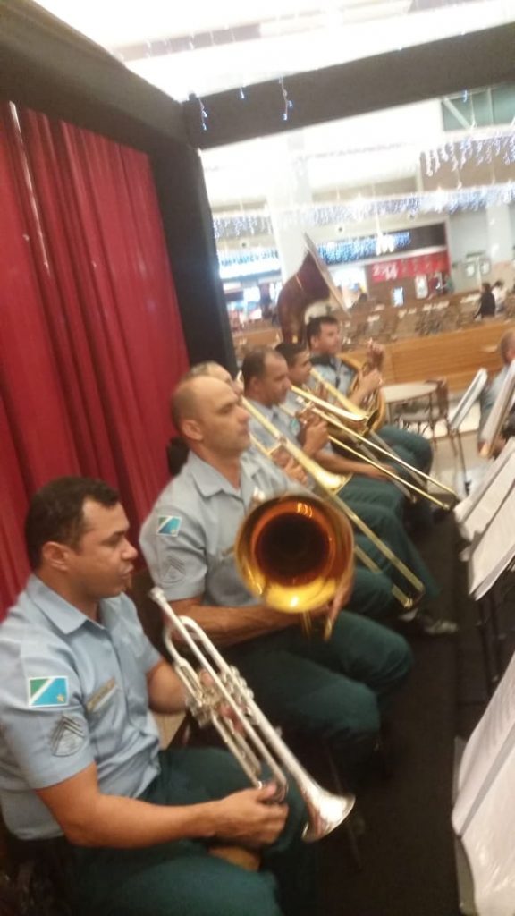 Na noite desta quarta feira, quem frequentou o shopping Bosques dos Ipês, teve a oportunidade de prestigiar a apresentação do Corpo Musical da PM, na Cantata de Natal, que vem ocorrendo todas às quartas feiras.