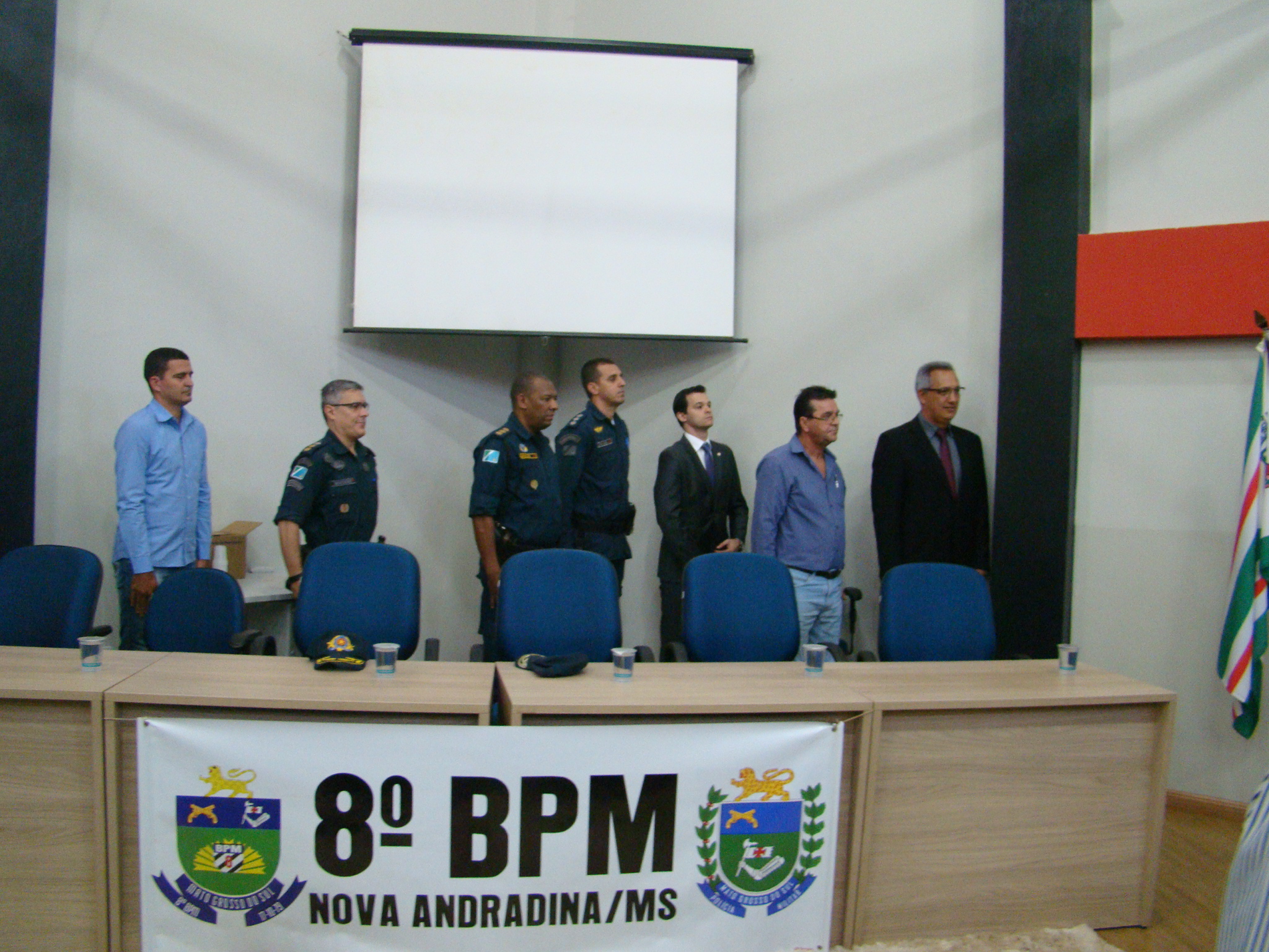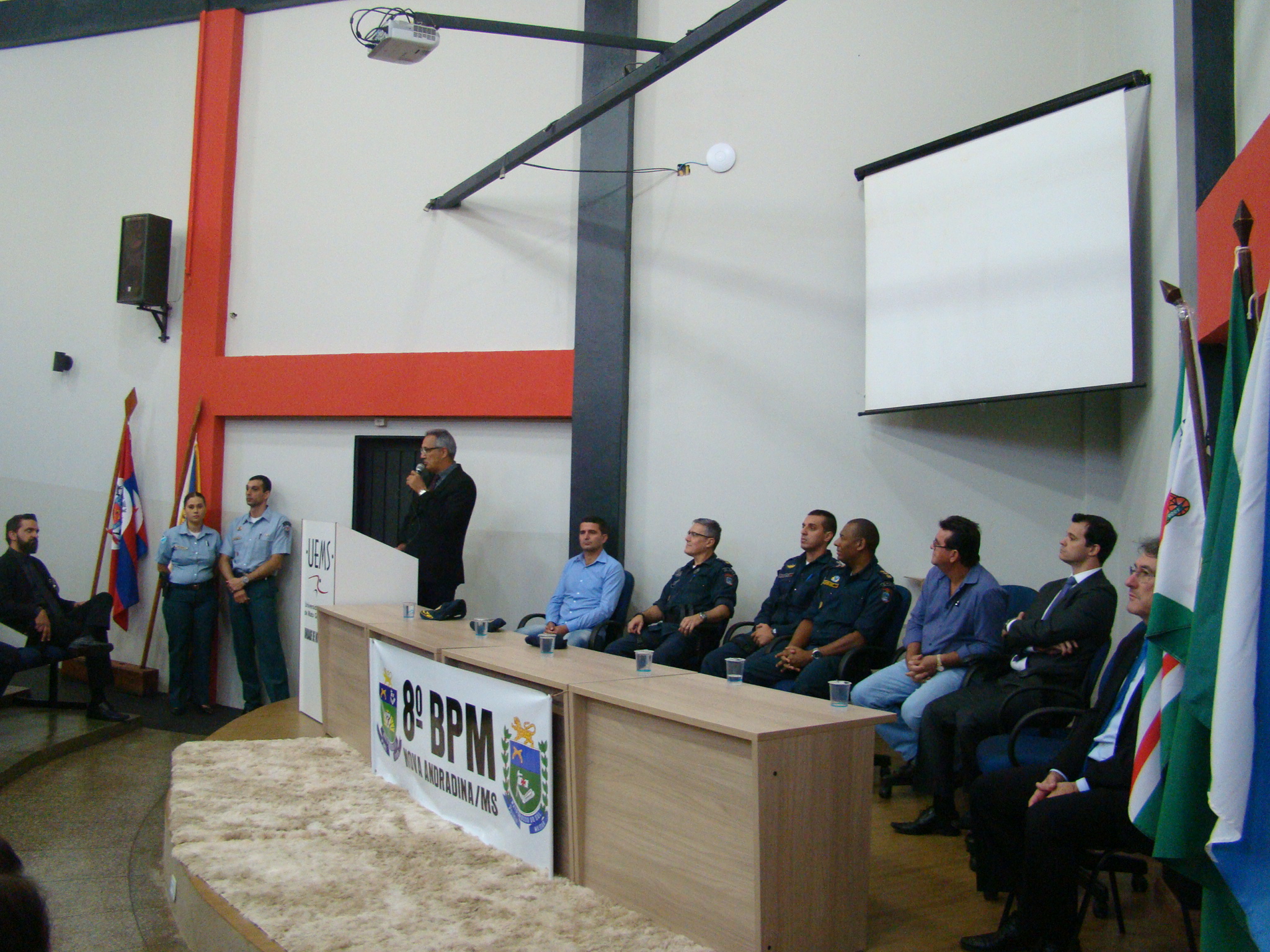 A solenidade aconteceu no auditório da UEMS e teve como presentes autoridades civis e militares, dentre eles o Vice Prefeito de Nova Andradina Newton Luiz de Oliveira, Dr. André Noveli – Delegado Regional de Polícia Civil, representantes do Ministério Público Estadual, além de vereadores , delegados de polícia e comandantes de unidades policiais militares da região do 8º BPM.