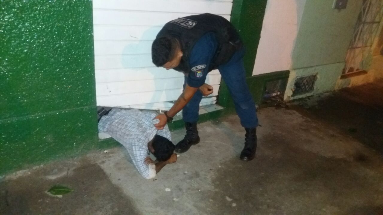 De imediato, a guarnição deslocou até o referido local onde logrou êxito em deter o indivíduo que fazia a vigilância do estabelecimento já de posse de alguns materiais, sendo questionado sobre a procedência dos objetos, o mesmo informou estar sozinho e que seu comparsa já havia se evadido do local.
