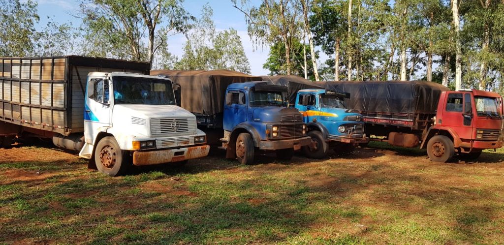 Nesta madrugada, as equipes adentraram um assentamento na região da cidade de Naviraí e apreenderam 07 caminhões carregados de cigarros do Paraguai.