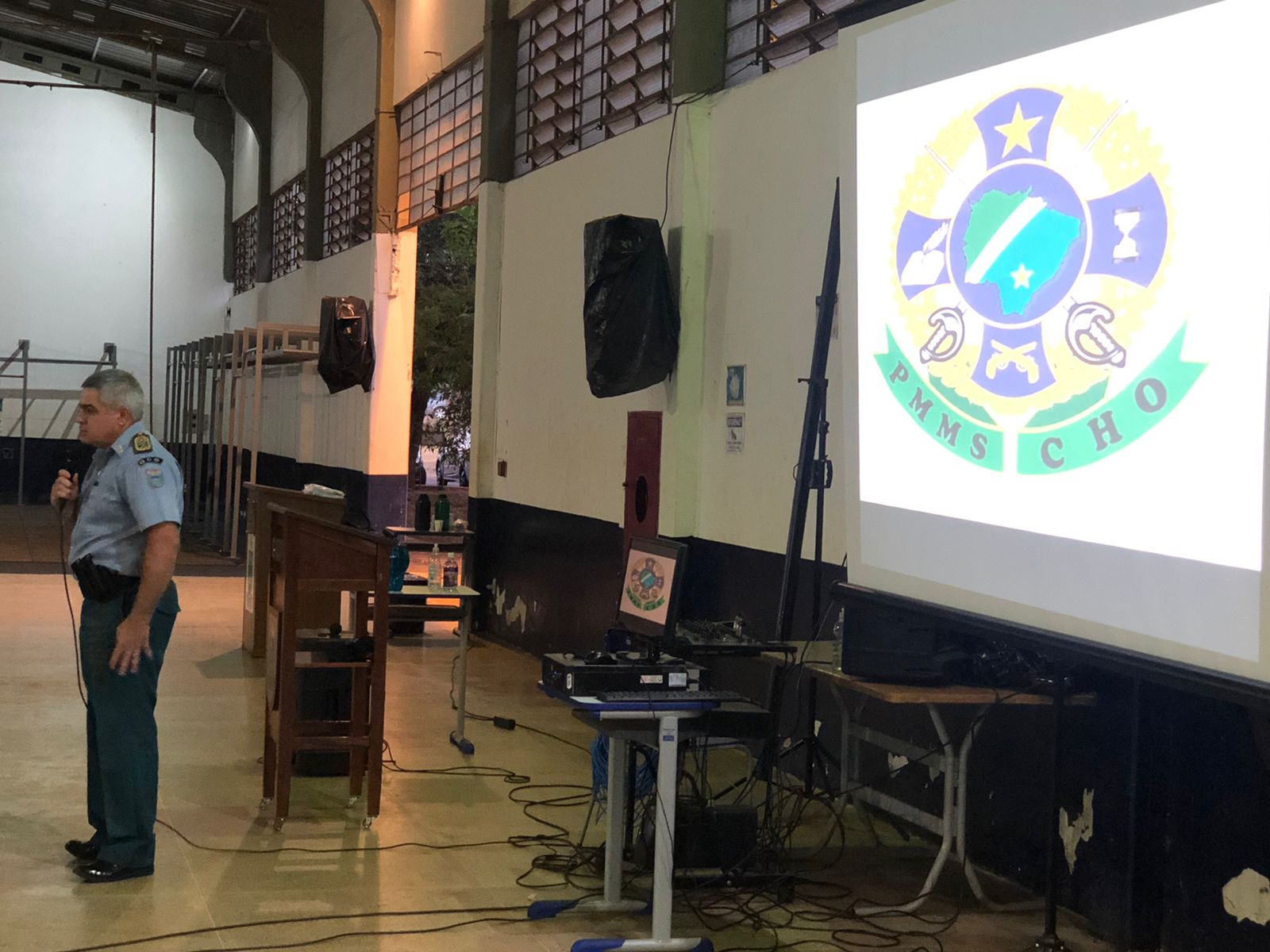 Campo Grande(MS) – Na tarde desta terça-feira(24.08), os alunos do Curso de Habilitação de Oficiais-CHO receberam a visita do Comandante-Geral da PMMS, Coronel PM Marcos Paulo Gimenez, do Subcomandante-Geral, Coronel PM Renato dos Anjos Garnes e do Diretor De Ensino, Instrução e Pesquisa, o Coronel PM Airton Leonel Praeiro.