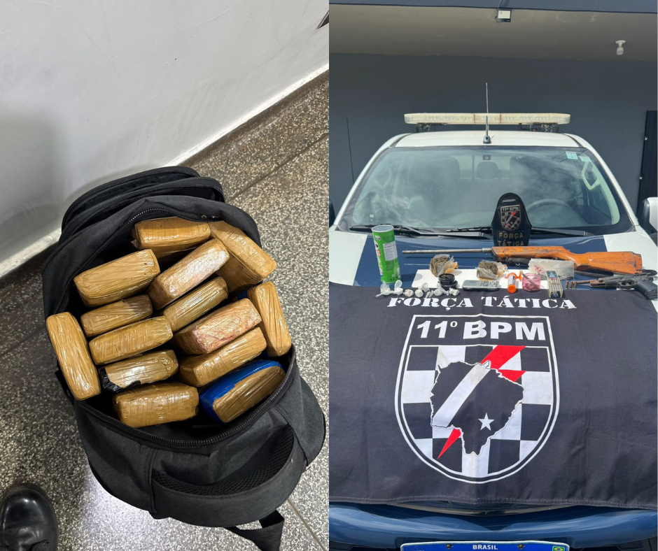 As duas ocorrências resultaram em prisões, apreensão de armas de fogo, munições e significativa quantidade de entorpecentes, demonstrando a eficiência, preparo técnico e comprometimento da Força Tática do 11º BPM na preservação da ordem pública.