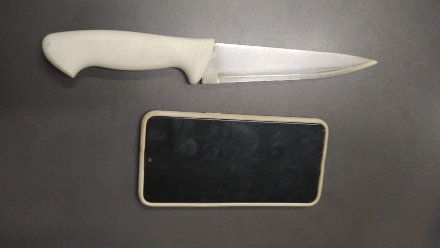 Em outra ocorrência, a Polícia Militar foi chamada por uma vítima que havia sido roubada. O suspeito, armado com uma faca, havia levado o celular da vítima no hall de seu prédio.