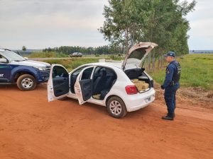 Um terceiro veículo, um VW Gol de cor branca, com placas de Assis Chateaubriand (PR), também tentou fugir, porém, foi abordado pelos PMR. Em vistoria no interior do veículo foram encontrados 181 kg (cento e oitenta e um quilogramas) de substância análoga a maconha, dividido em 6 fardos e 74 tabletes. Questionado, o condutor (24), morador do PR, informou que adquiriu a droga em Coronel Sapucaia e levaria para Iporã (PR). E também relatou que tanto o Civic quanto o Elantra faziam o serviço de “batedores”, cuja função é informar sobre possíveis fiscalizações policiais na rodovia.
