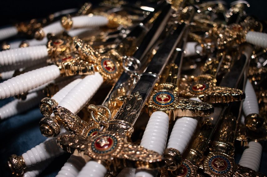 Durante a solenidade os novos oficiais realizaram a devolução do Espadim Tiradentes, arma que conduziram com galhardia durante a formação, recebendo a tão esperada espada de oficial.