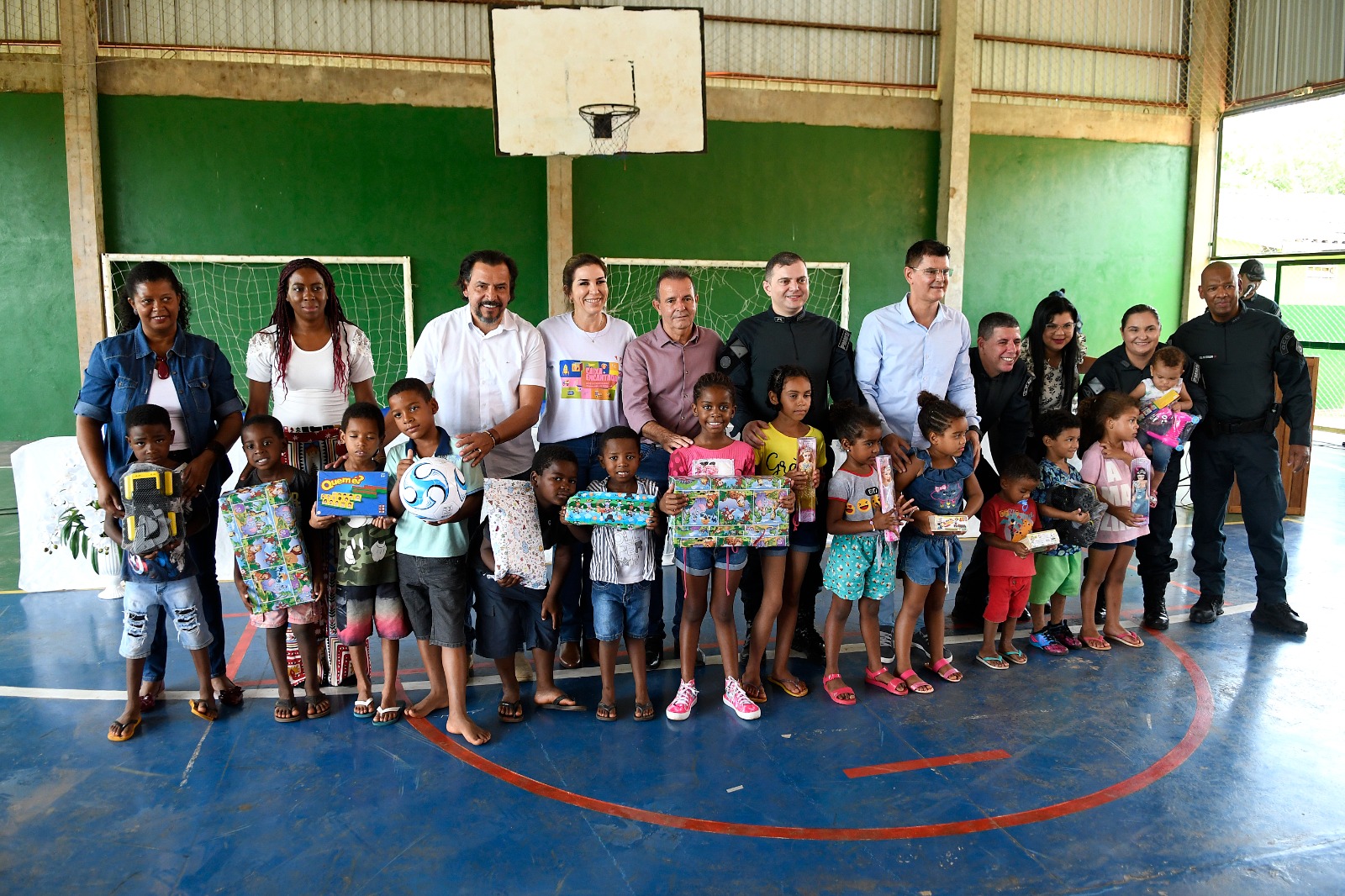 Jaraguari (MS) – Na manhã de hoje, aconteceu a entrega de brinquedos da campanha “Caixa Encantada”, na comunidade Quilombola Furnas do Dionísio, localizada em Jaraguari/MS. A ação social promovida pelo Governo de Mato Grosso do Sul, com apoio da Primeira-Dama, Mônica Ridel, teve a participação das instituições governamentais, incluindo a Polícia Militar.