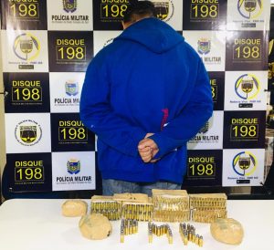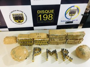 Na entrevista ao passageiro também se detectou controvérsias que levaram os policiais militares a efetuar uma busca minuciosa no interior do veículo, sendo localizadas em “mocós” no painel e no motor 3.300 munições, sendo 3.000 unidades de calibre. 22, 250 unidades de calibre .38 e 50 unidades de calibre .44.