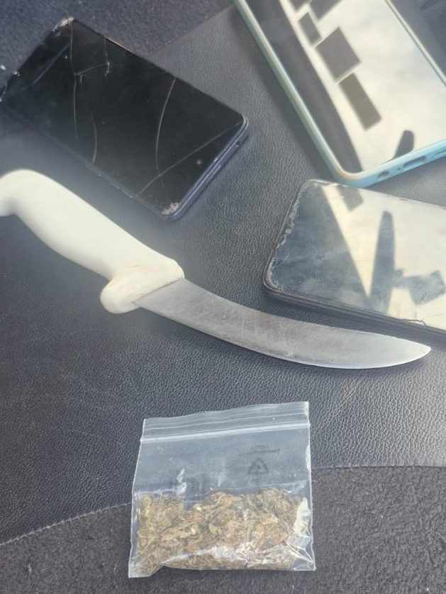 No local, a equipe abordou três suspeitos. Durante as buscas, foi localizada uma faca com um dos envolvidos e, com outro, um papelote de substância análoga à maconha, além de dinheiro em espécie.