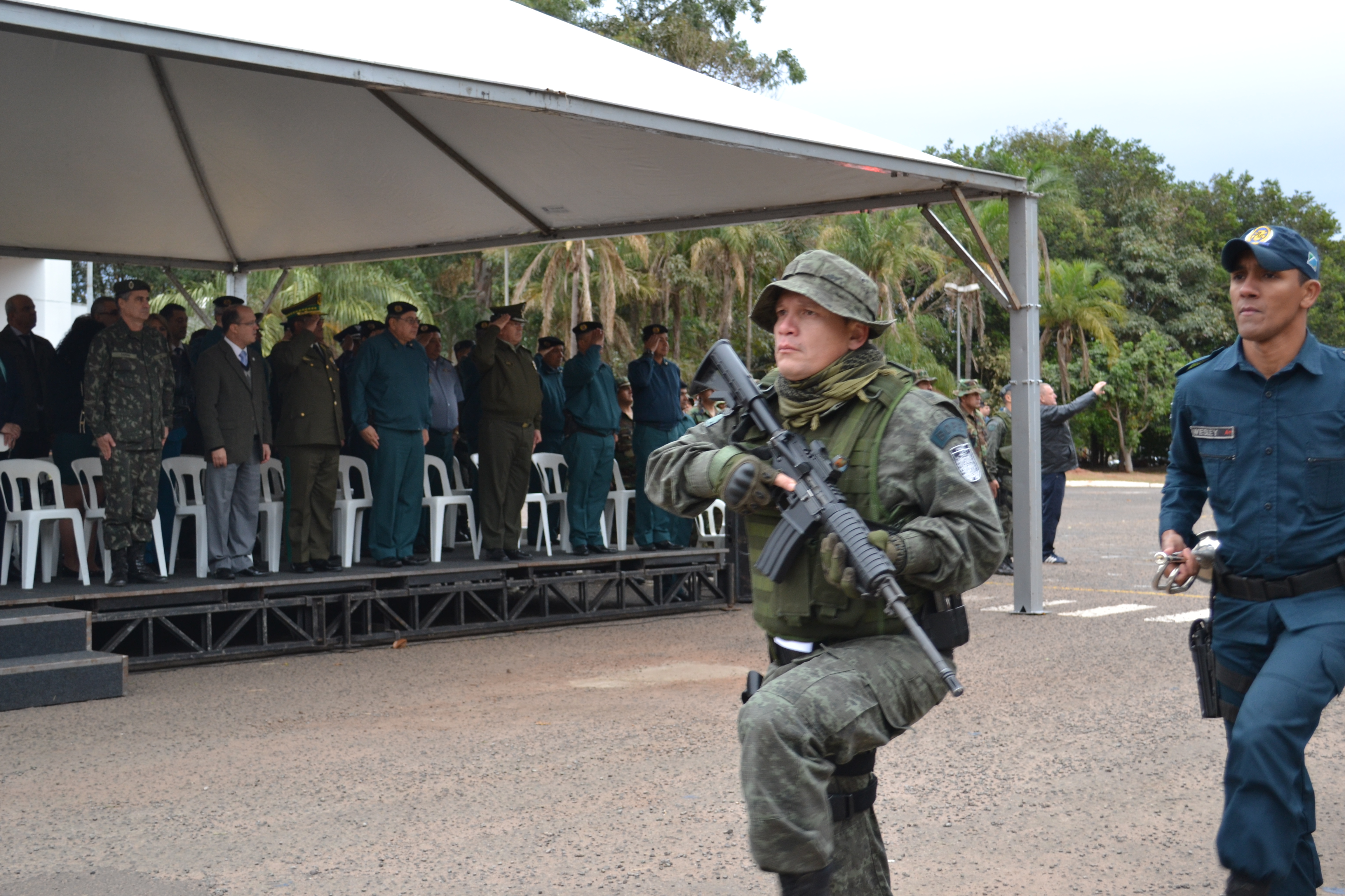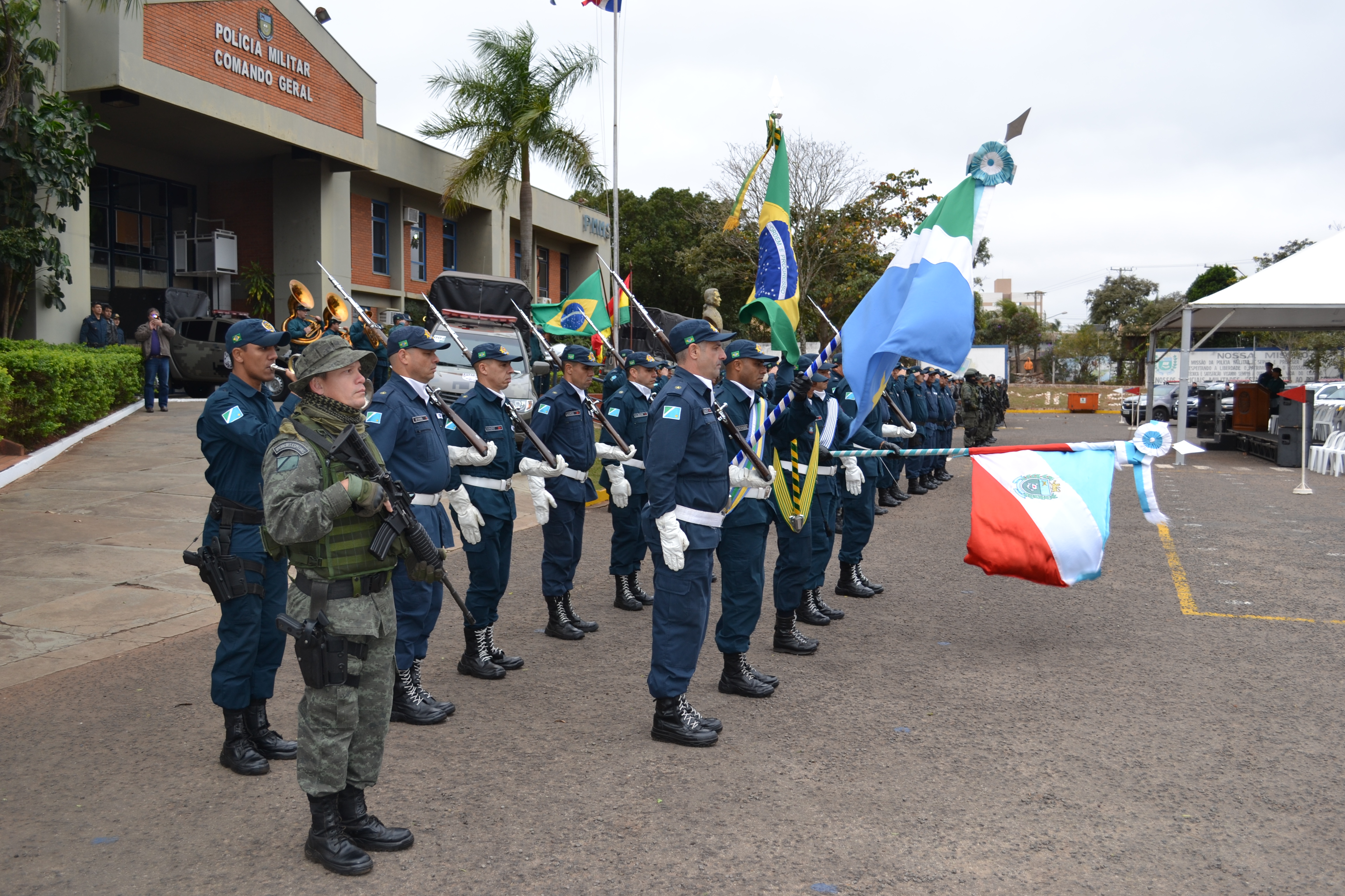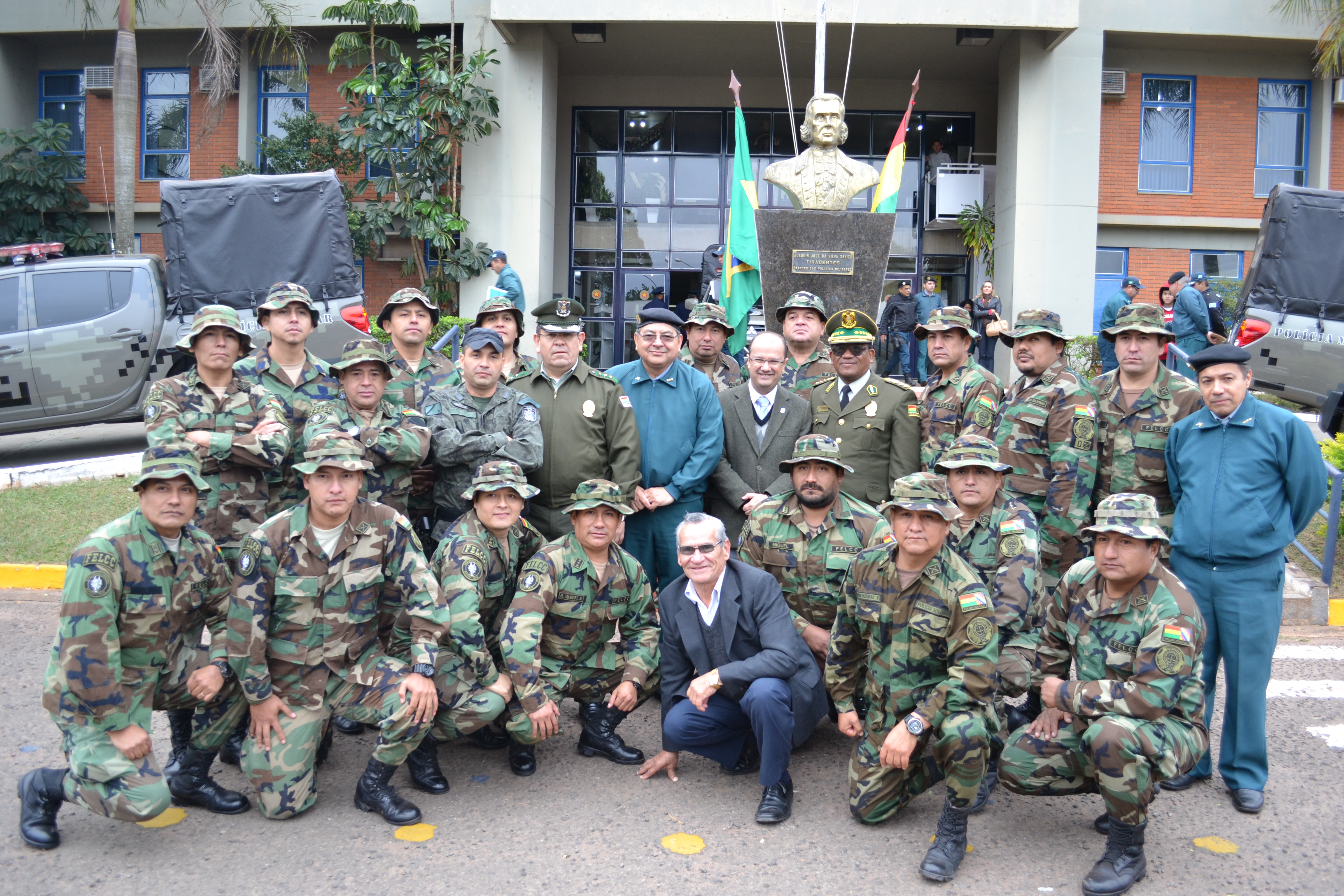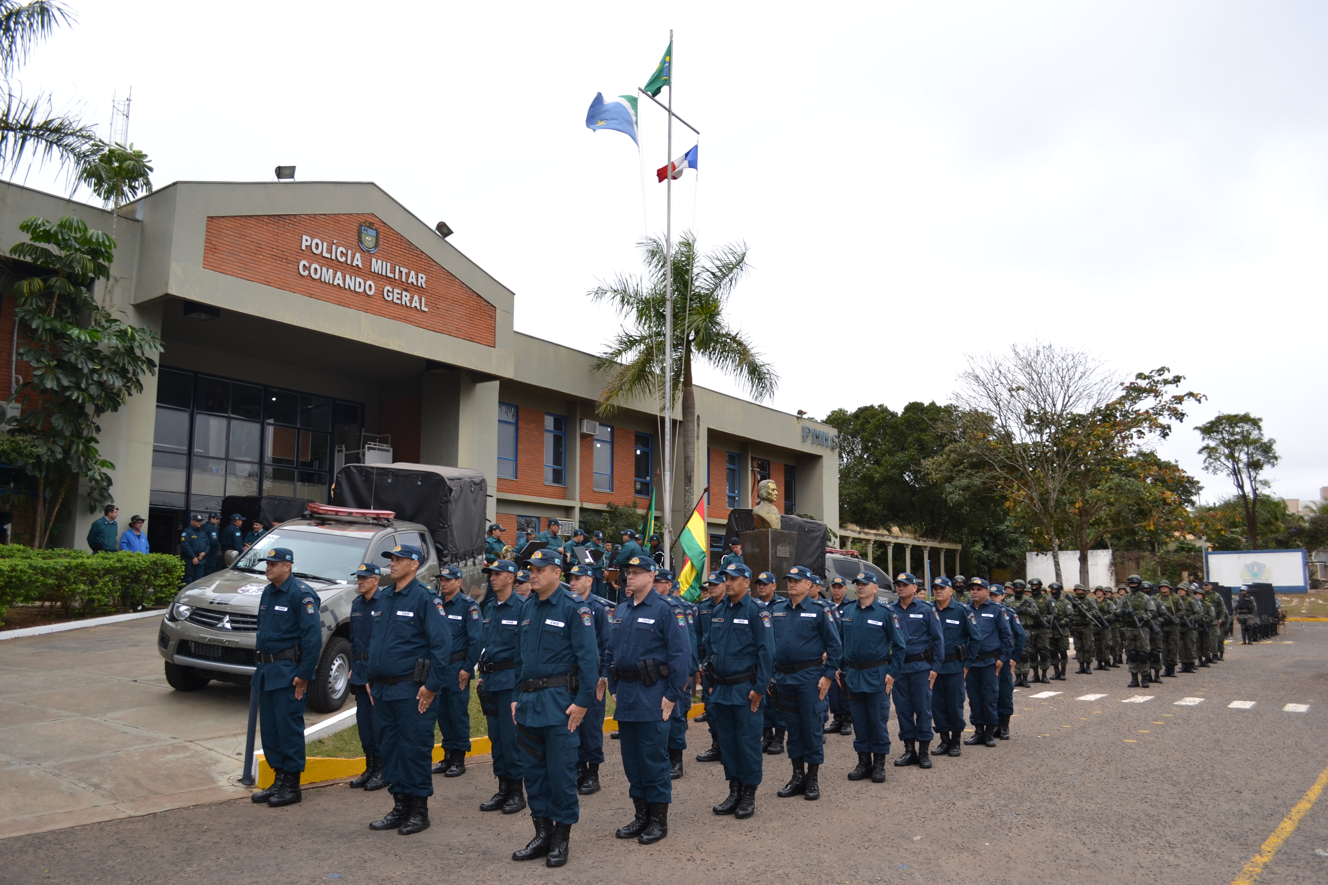 Campo Grande (MS) –A Polícia Militar do Estado de Mato Grosso do Sul através do Batalhão de Operações Especiais (BOPE) realizou hoje (17), às 14h, no quartel do Comando Geral da PMMS, a abertura oficial do Estágio de Patrulha em Ambiente Rural, que foi oferecido à Polícia Nacional da Bolívia. A solenidade contou com a presença do secretário de Estado de Justiça e Segurança Pública, José Carlos Barbosa, ministro de Governo da Bolívia, Carlos Romero Bonifaz, do Comandante-Geral da PMMS, Coronel Waldir Ribeiro Acosta, o Comandante-Geral da Corporação Boliviana, Abel Galo de La Barra Cáceres, do diretor do Departamento de Força Especial de Luta Contra o Crime de Santa Cruz da Polícia Boliviana, Gonzalo Felipe Medina Sánchez, entre outras autoridades, civis e militares.