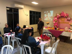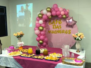 Logo na entrada foram recepcionadas com uma rosa com bombom e ao som da canção “Mulher” de Erasmo Carlos interpretada no saxofone pelo Cb Gerson. Dando continuidade a Sgt. Gleici Kelly iniciou o café com uma oração para todos os presentes.
