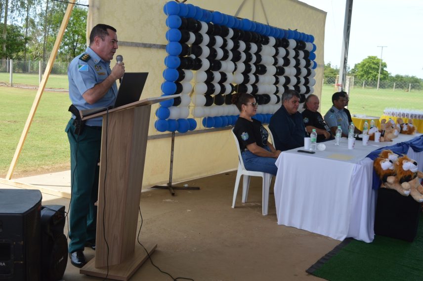 A cerimônia que contou com o Comandante do 5º Batalhão de Polícia Militar, Coronel PM James Magno Morais Silveira, o Comandante do 1º Pelotão de Pedro Gomes, Tenente PM Manoel Moreira de Oliveira, e o Prefeito Municipal Willian Luiz Fontoura, além da Secretária Municipal de Educação, Professora Luzia Ferreira de Camargo, e diversas outras autoridades locais.