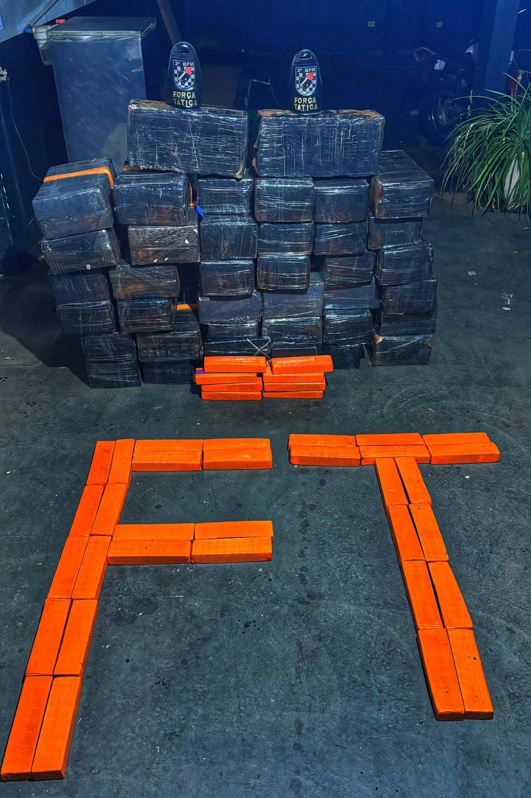 Dentro do local foram encontrados 38 volumes e 49 tabletes soltos, pesando aproximadamente 650,61 kg (seiscentos e cinquenta quilos e sessenta e um gramas), sendo encontrado um carteira contendo documentos pessoais e que ao ser checado via SIGO, o masculino possui passagens por tráfico de drogas, resistência, lesão corporal entre outros.