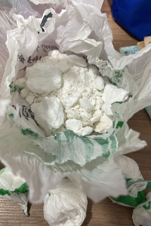 Diante a informação foi realizada a abordagem policial de um indivíduo de 61 anos que era morador do local e se encontrava na frente da residência apontada nas denúncias, com o qual foi localizado a quantia de R$1.234,00, não sabendo explicar a origem do dinheiro tampouco informar o valor que portava. Durante busca na residência a guarnição da Força Tática veio a localizar um estojo escolar com 6 porções de maconha prontas para venda (pesando 70 gramas), sendo localizado ainda no estojo um molho de chaves que abria um quarto em que os policiais localizaram embaixo de uma pia duas sacolas plásticas contendo: 2 tabletes de maconha (pesando 1.700 gramas), 6 porções de substância análoga a cocaína (pesando 178 gramas), 2 balanças de precisão e petrechos utilizados no embalo da droga.