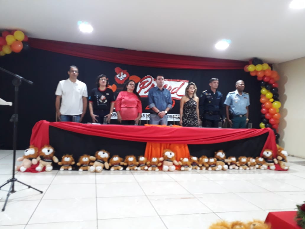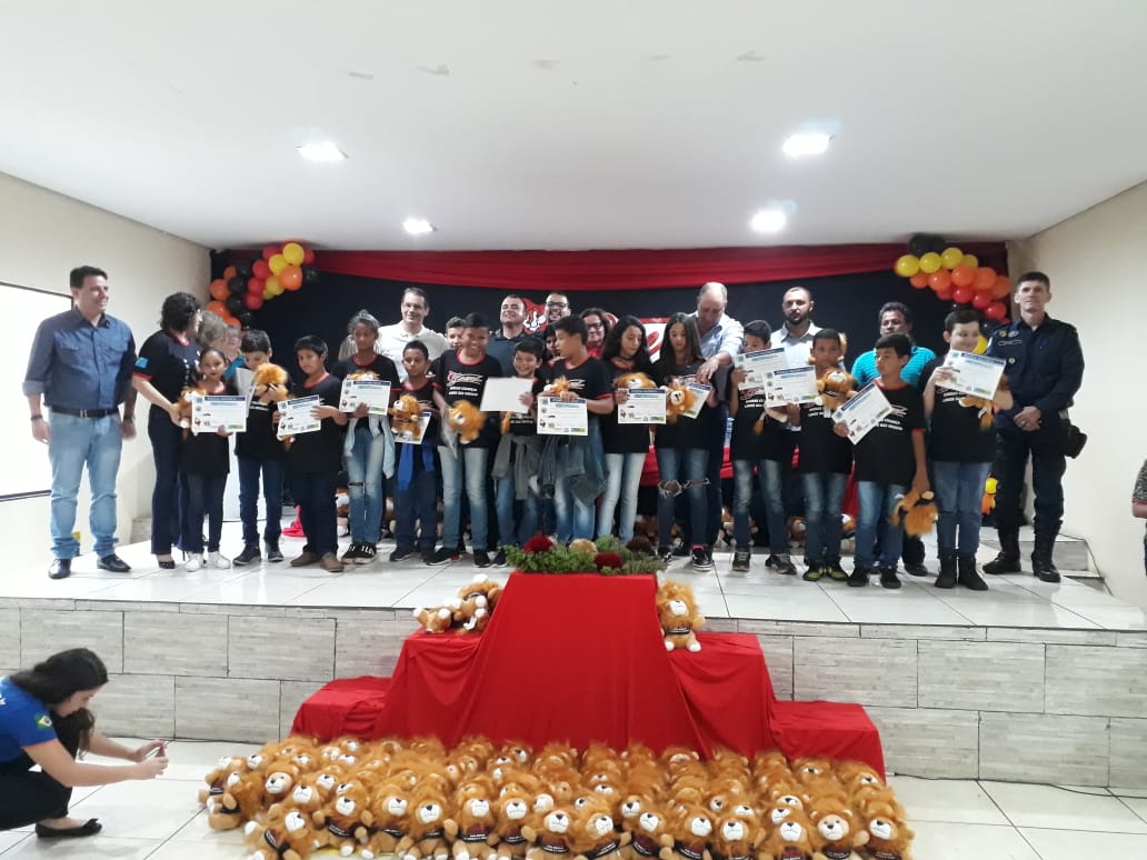 Caarapó (MS) – Na manhã desta quarta-feira (27/11) no auditório do SINTED em Caarapó foi realizada a Formatura do PROERD (Programa Educacional de Resistência às Drogas e à Violência) no total foram formados 180 alunos da turma do 5º ano do ensino fundamental da Rede Municipal do município. O evento contou com a participação dos pais dos alunos do Prefeito André Luíz Nezzi a Presidente da Câmara de Vereadores a vereadora Marinalva de Souza Farias da Costa, o vereador Alessandro Paulino que foi o Padrinho da turma, a promotora Titular da 1ª Promotoria de Justiça de Caarapó Dra Fernanda Rottili Dias, o Comandante da 9ª Companhia de Policia Militar Tenente Coronel PM Everson Antonio Rozeni o Comandante do Comando de Aréa-1 Coronel Gilvaldo mendes de Oliveira. Na direção e coordenação das turma estiveram o corpo docente das Escola Municipal e professores e com o instrutor da Policia Militar Cabo PM Alessandro Wagner Martins Jefferson. Durante o evento os alunos realizaram o juramento do programa para receber os certificados, e se comprometeram a levar adiante os ensinamentos absorvidos durante as aulas.