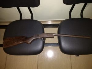 A guarnição foi acionada via 190, a deslocar na Rua Geraldo Jordão, Distrito de Debrasa, para atender uma ocorrência de Porte Ilegal de Arma de Fogo, onde o autor estava ameaçando populares, pois estava na procura de sua amásia para matá-la. Ao encontrar a vítima na casa de sua patroa o autor invadiu a residência e começou a coagi-la para voltar para a casa. A vítima se negou a ir então o autor começou a puxá-la pela blusa, sendo que a vítima conseguiu escapar e fugiu até a residência da sua Genitora, sendo seguida pelo autor. Com a chegada da Guarnição da PM, o autor se trancou dentro de um quarto, tentando se livrar da arma de fogo, porém foi detido pelos policiais em posse de uma Carabina Calibre 32.