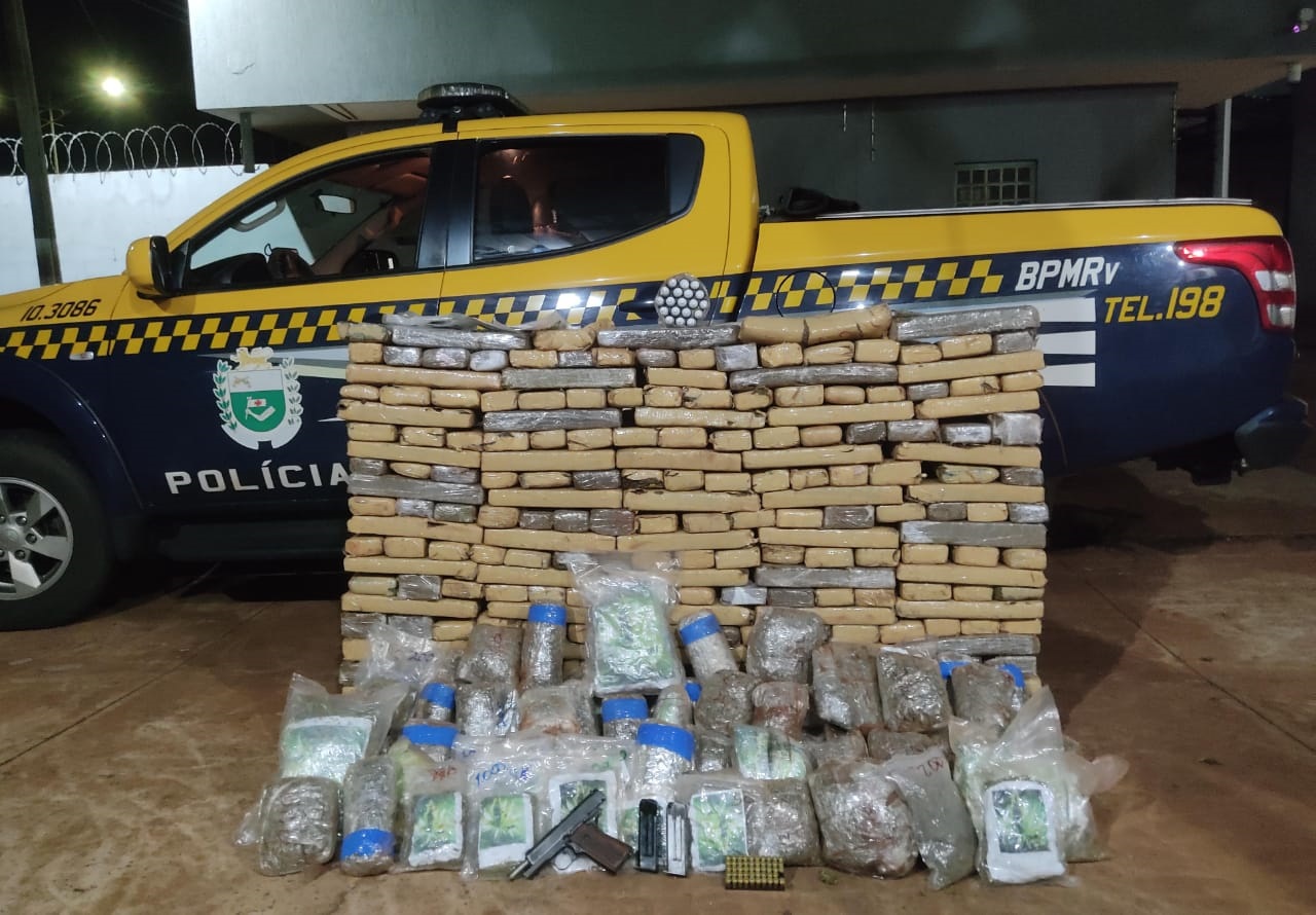 Nova Andradina (MS) – A equipe da Base Operacional de Nova Andradina, do BPMRv (Batalhão de Polícia Militar Rodoviária), na tarde deste domingo (12/11), prendeu um homem que transportava carga de entorpecentes em um veículo furtado e portava uma pistola cal. 9mm.