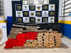Ponta Porã (MS) – Durante a Operação Hórus, desencadeada pela SEJUSP/MS e pela Secretaria Nacional de Operações Integradas (SEOPI) do Ministério de Justiça e Segurança Pública, a Polícia Militar Rodoviária prendeu na noite desta quarta-feira (29) dois homens de 21 e 22 anos, após serem flagrados com 254,600 kg de maconha escondida em veículo.