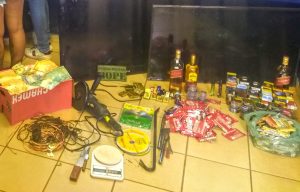 Além dos objetos furtados ainda foram encontradas porções de drogas e dinheiro.