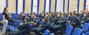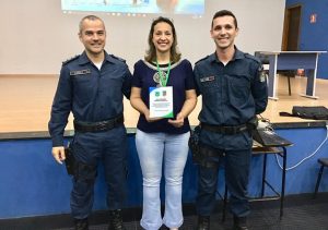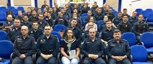 A palestrante pontuou sua fala na atividade policial militar, dialogando assuntos e orientações gerais e que “o profissional deve se autoconhecer”, sendo que “exercer função pública é extremamente estressante”.