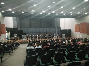 Na noite desta quarta feira, o Comandante do CEFAP, o Tenente Coronel Luis Fernando Lopes de Carvalho, e o Coordenador do Projeto Fazendo a Diferença, Subtenente Natanael Alves de Araujo, recepcionaram os parentes dos alunos e demais convidados para o Concerto Anual de Encerramento do projeto, no auditório da UEMS, em Campo Grande/MS.