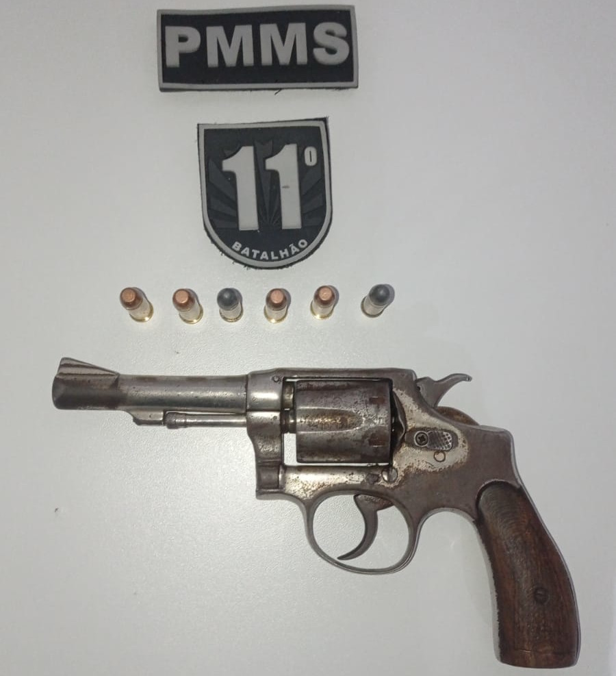 A guarnição de serviço foi acionada via telefone para averiguar ocorrência envolvendo um casal, durante uma confraternização. Conforme relato das testemunhas, o casal chegou ao local e o homem com ciúmes da esposa, começou a agredir e ameaça-la, quando sacou uma arma de fogo. Ao saber que a PM foi acionada, o homem fugiu do local. Durante diligências, os policiais militares encontraram a vítima e se deslocaram até a residência do casal, na qual encontraram o suspeito. Com a permissão da proprietária da residência, a guarnição entrou no imóvel e localizou um revolver calibre .38, com 6 (seis) munições intactas, guardada no quarto do casal.
