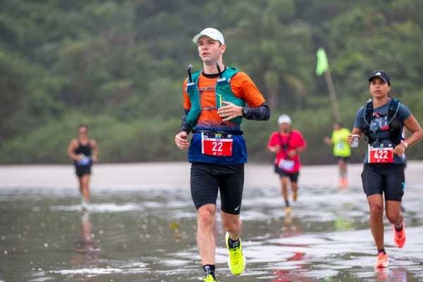 O percurso extenso de 75 quilômetros testou os limites, variando entre faixas de areia à beira-mar, trilhas sinuosas, subidas íngremes, asfalto e até enfrentando chuva torrencial. Essa combinação tornou a corrida uma das mais desafiadoras.