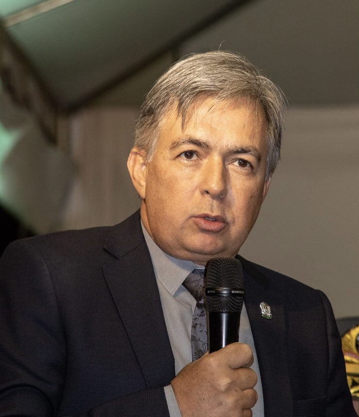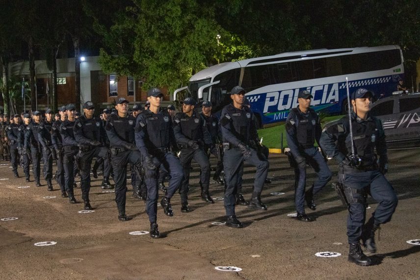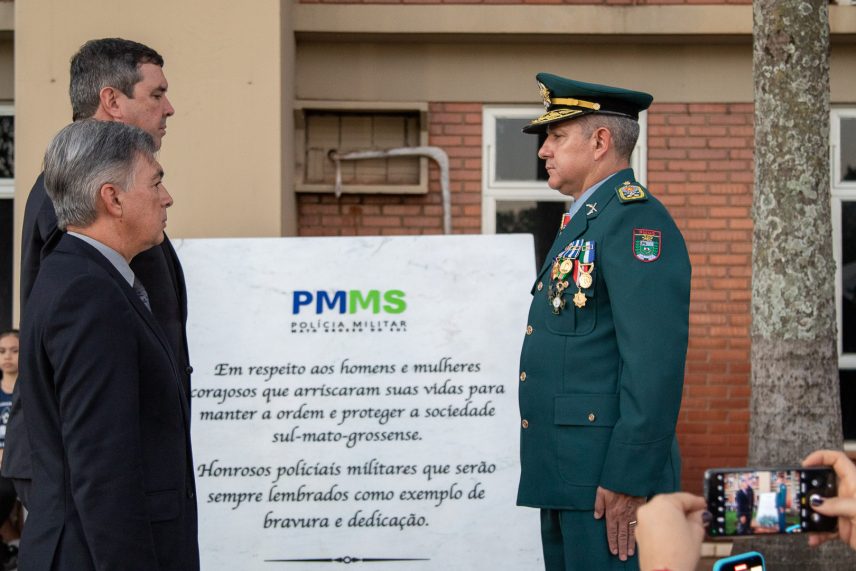 Em seguida, foi a vez do governador Eduardo Riedel proferir suas palavras. Conforme disse, estava feliz em participar da cerimônia e que a Polícia Militar é orgulho para todos. Ressaltou que sempre irá buscar a valorização do profissional e atender a corporação.