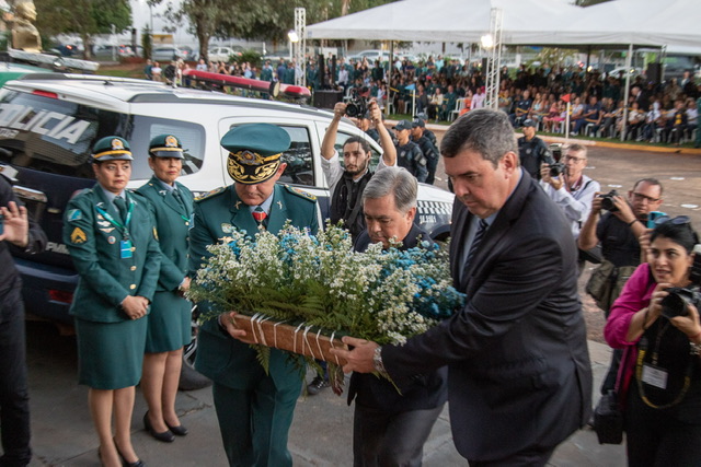Ao final, a tropa desfilou em continência ao governador do Estado, Eduardo Riedel, com a passagem dos projetos sociais, corpo musical, estado maior, guarda bandeira, pelotões dos cadetes da Academia de Polícia Militar, Batalhão de Polícia Ambiental, Batalhão de Polícia Rodoviária, Batalhão de Choque e conjuntos de cavalaria do Esquadrão Independente de Policiamento Montado da PMMS.