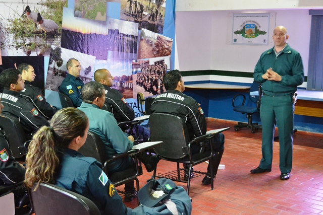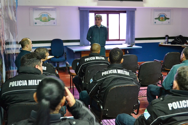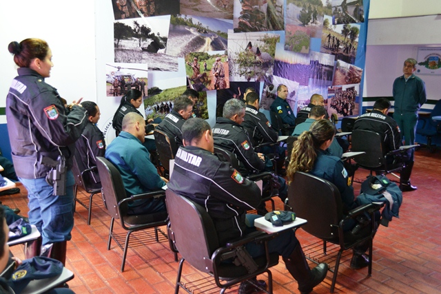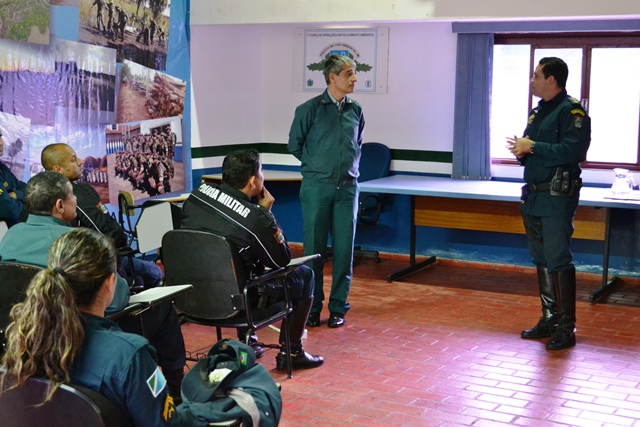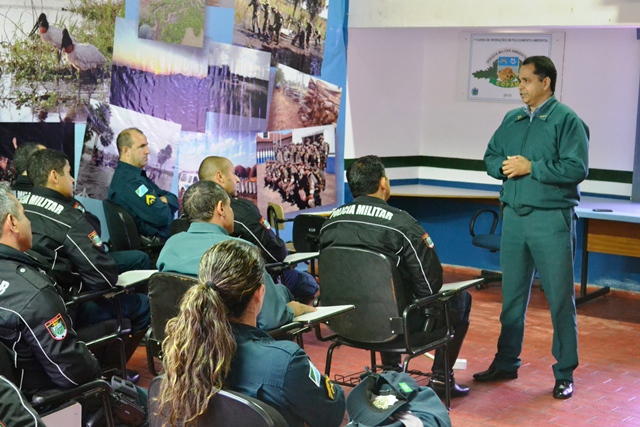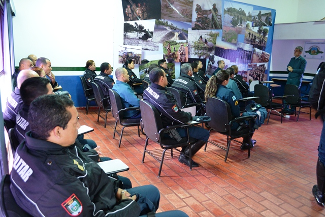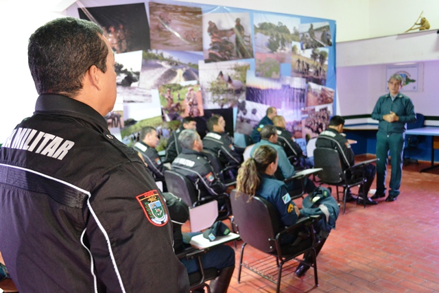 Campo Grande (MS) – O Chefe do Estado Maior Geral da Polícia Militar de Mato Grosso do Sul, coronel Paulo Rogério de Carvalho Silva, dando continuidade ao projeto que objetiva divulgar os trabalhos desenvolvidos pelas cinco seções administrativas do Estado Maior Geral, reuniu-se na manhã de hoje (09) no auditório da Polícia Militar Ambiental com o efetivo do 1º Esquadrão Independente de Polícia Militar Montado (EIPMMont), conhecido popularmente de “Cavalaria da PMMS”.
