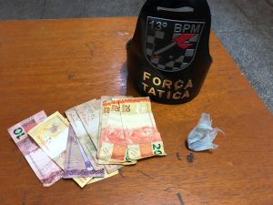 A motocicleta foi abordada na Rua Bruno Mariano de Farias e nada foi encontrado com o condutor da motocicleta (homem de 22 anos), já com o passageiro (homem de 20 anos) foi localizada uma trouxinha de maconha e R$ 370 reais em várias notas miúdas.