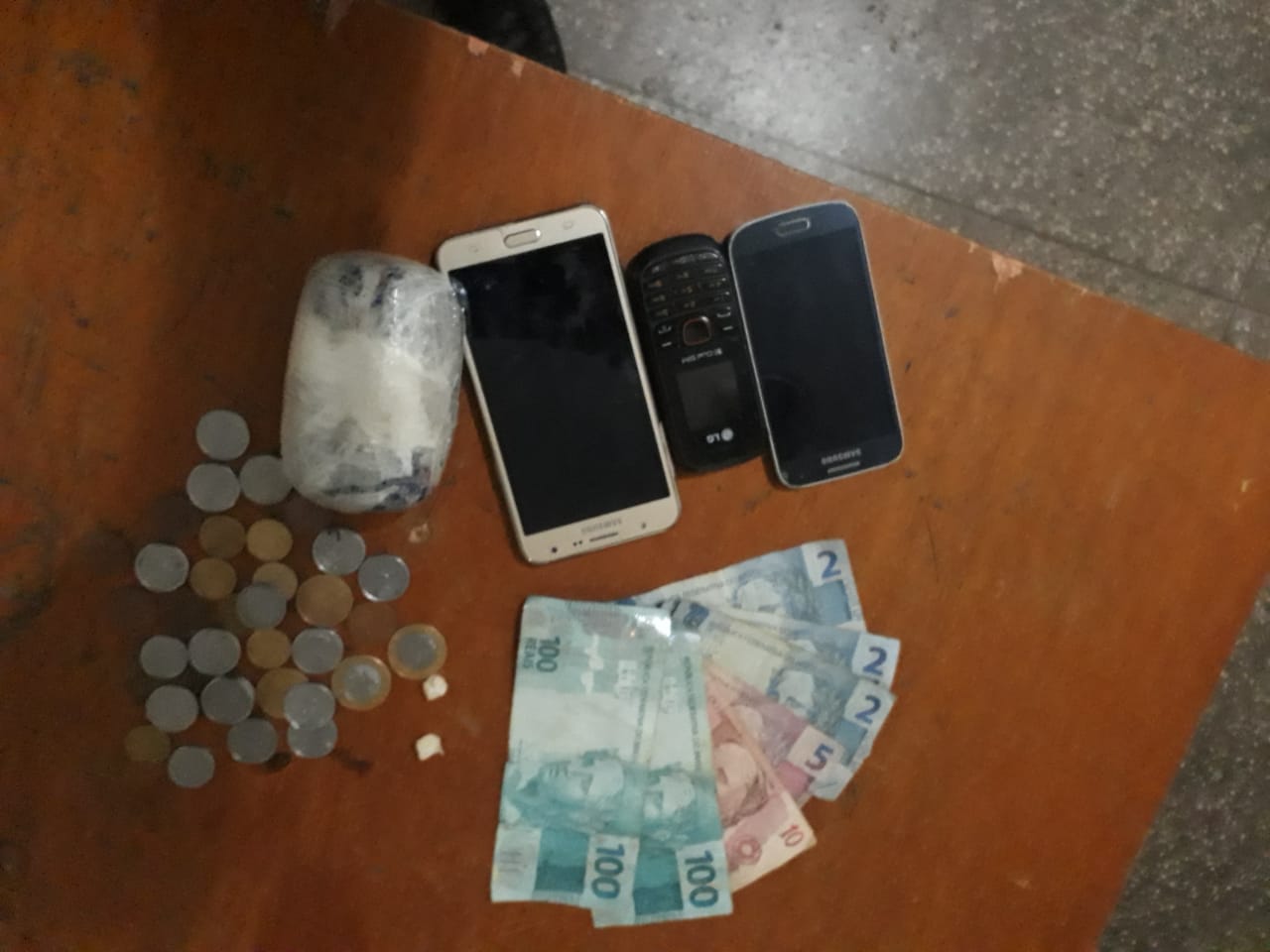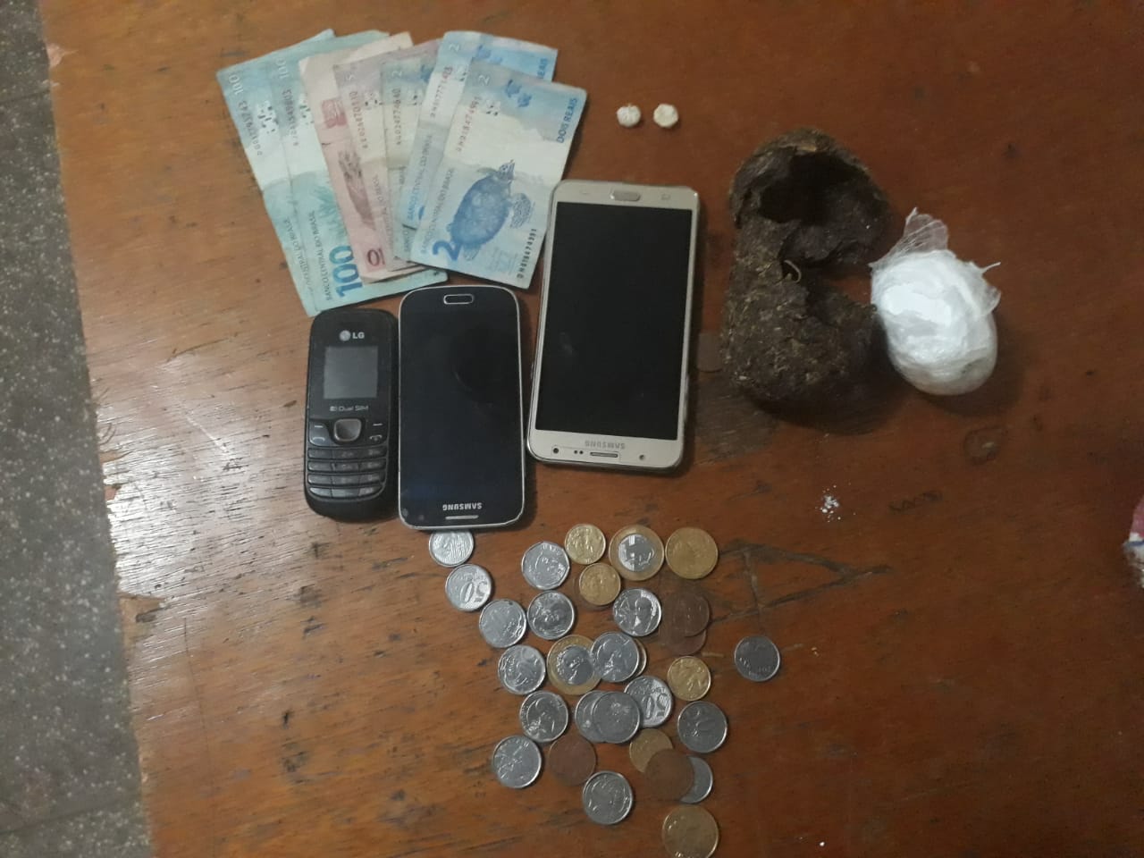Durante busca na residência das mulheres, os policiais militares localizaram no guarda roupa da autora de 29 anos: um invólucro contendo 170 gramas de substância análoga a maconha, um invólucro contendo 96 gramas de substância análoga a cocaína, papel plástico comumente utilizado para embalagem de drogas, um caderno de contabilidade e cerca de R$ 214 reais em diversas notas de pequeno valor e moedas.