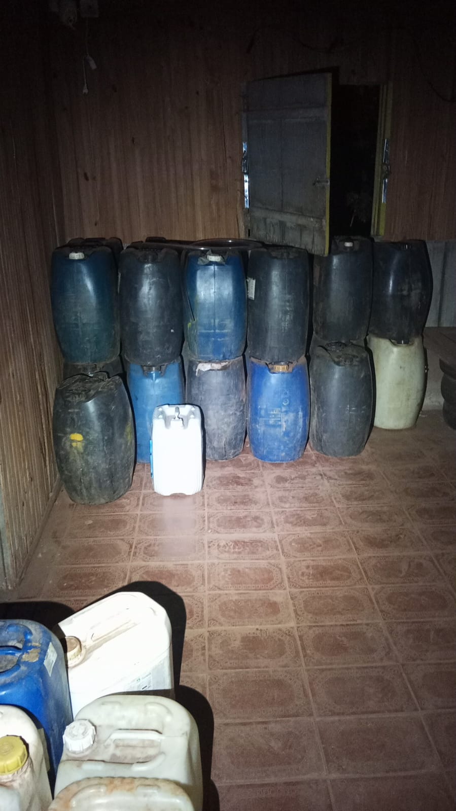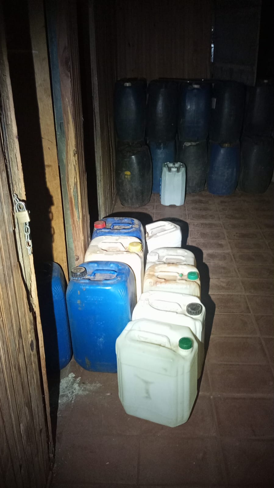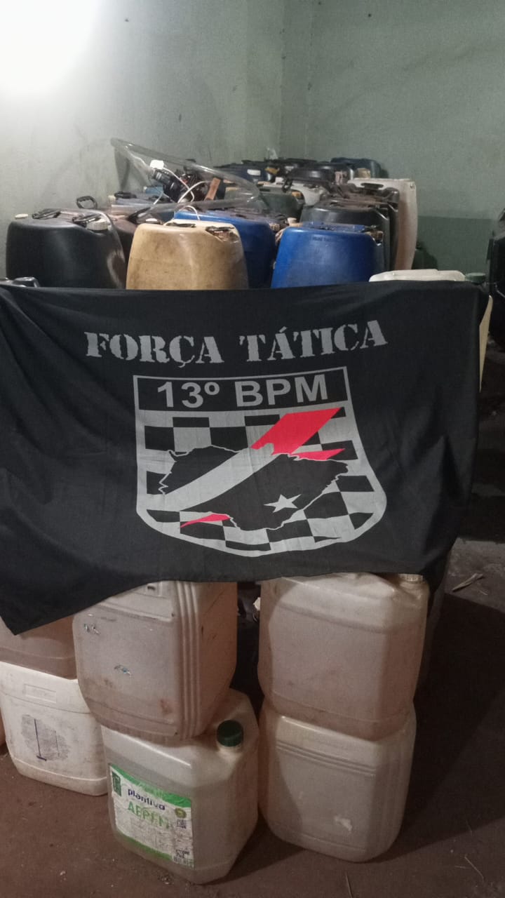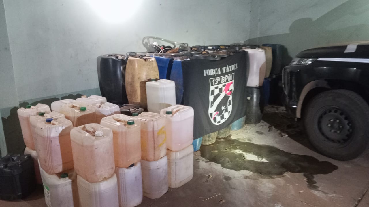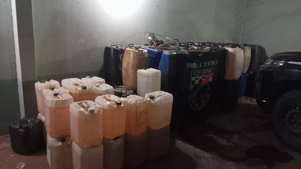 Com a chegada das equipes policiais ao local, os suspeitos tentaram empreender fuga, mas foram contidos e abordados. Durante as buscas, foram localizados vários galões cheios de combustível etanol, caracterizando o crime de furto qualificado. Ainda no perímetro, os militares identificaram um imóvel utilizado como armazém irregular, onde foi encontrada uma expressiva quantidade de combustíveis estocados de forma clandestina, o que ampliou a constatação do esquema criminoso.