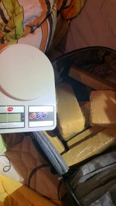 Ao ser questionado sobre a droga, o homem de 31 anos disse que havia mais em sua casa. Assim, os policiais adentram a casa e acabaram encontrando uma balança de precisão e 7,2 quilos de maconha, distribuídos em 09 grandes tabletes, dentro de uma bolsa. O indivíduo recebeu voz de prisão em flagrante delito e foi levado preso para a delegacia, onde foi autuado em flagrante delito.
