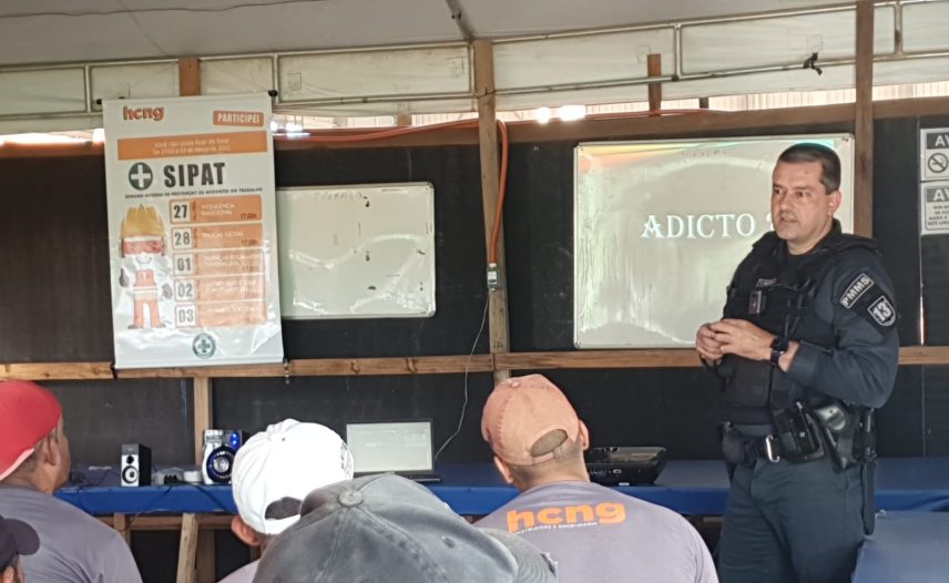 Nessa terça-feira (28/02), o comandante da Polícia Militar da cidade de Aparecida do Taboado, o 2° Tenente Luiz Carlos Pereira Vieira, realizou uma palestra de prevenção ao uso de drogas para coloaborados da Construtora HCNG.