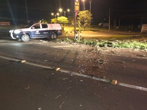 Durante rondas pela Avenida Rio de Janeiro, a equipe de Força Tática visualizou um veículo que trafegava pela Rua Aurícia de Queiroz com velocidade incompatível com a permitida na via. Ao perceber que seria abordado, o condutor empreendeu fuga dirigindo perigosamente por diversas ruas do Bairro Santo Antonio, e na Avenida Cristovão Pereira dos Santos começou a arremessar objetos para fora do veículo. O indivíduo tentou realizar uma conversão na rodovia BR 158, mas perdeu o controle do veículo, vindo a atravessar o canteiro e parar na pista de rolamento.,