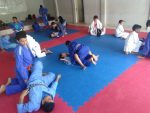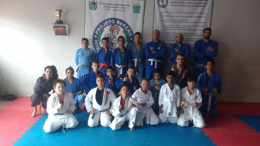 Neste retorno às atividades, o novo instrutor do Projeto Reação, soldado PM Eliézer Machado de Lima, proporcionou aos alunos uma vivência na atividade de Ordem Unida, atividade tipicamente militar que busca fomentar a disciplina, moral, proficiência e espírito de corpo em seus praticantes. O Instrutor convidou um importante atleta de Jiu-jítsu de Paranaíba, João Fernando Pinheiro, para participar da primeira aula, o qual demonstrou técnicas, lutou com os alunos e contribuíu com suas experiências adquiridas durante os longos anos de prática.