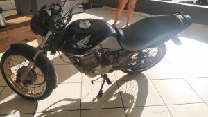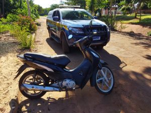 Na manhã de sábado (26/02), policiais militares da equipe de radiopatrulha de receberam uma denúncia informando que três indivíduos estariam tentando atravessar uma moto por baixo de uma cerca, na região da ponte da “Maria Augusta”. Os policiais já tinham conhecimento sobre o furto de uma motocicleta na região do Ginásio Municipal de Esportes ocorrido na madrugada, então diligenciaram rapidamente até o local e localizou a motocicleta abandonada em um matagal. Ninguém foi localizado nas proximidades. Foi constatado que se tratava da motocicleta que há pouco havia sido furtada. Assim, o veículo foi recuperado e levado para a delegacia para ser restituído ao seu dono.
