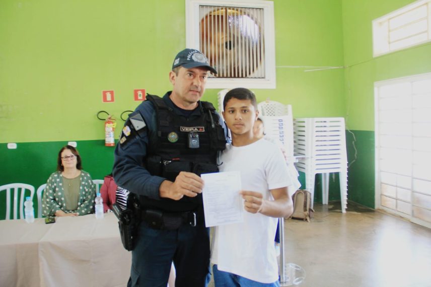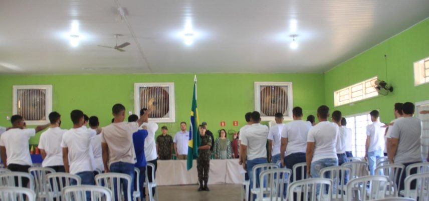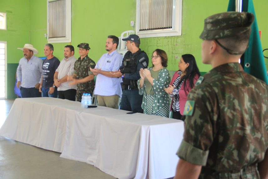 Aparecida do Taboado (MS) – Na tarde da última quarta-feira (26/04), o comandante da cidade de Aparecida do Taboado, 2° Tenente PM Luiz Carlos Pereira Vieira esteve presente na realização da cerimônia de juramento a Bandeira Nacional, onde os jovens que se alistaram, receberam o Cerificado de Dispensa de Incorporação.