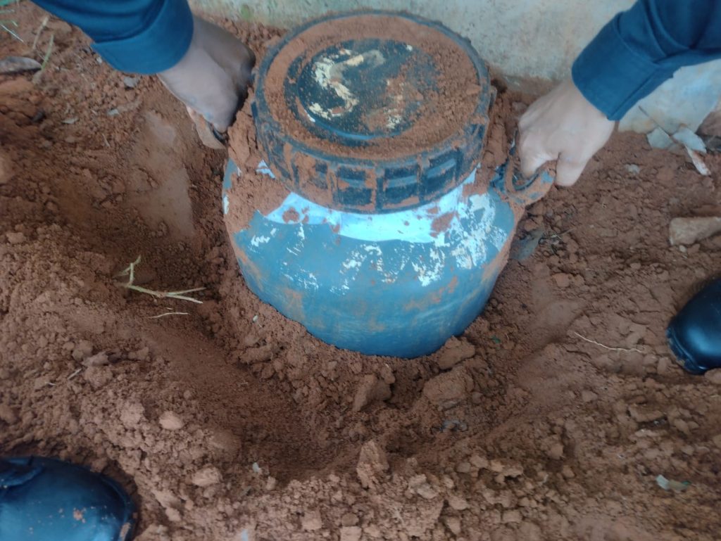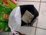 Os policiais verificaram o local onde os indivíduos reviraram a terra e encontram uma galão de 50 litros enterrado, o qual estava cheio de maconha e haxixe. A mulher, proprietária da residência, negava haver mais algo ilícito dentro da casa, entretanto, os policiais encontraram uma bolsa preta na cozinha contendo vários tabletes de maconha. Na sala da casa, foi encontrada outra balança de precisão e R$ 200 reais em dinheiro em um armário da cozinha. Ao todo foram aprendidos 8,7 quilos de maconha; 7,1 quilos de haxixe e 0,234 gramas de crack e duas balanças de precisão.