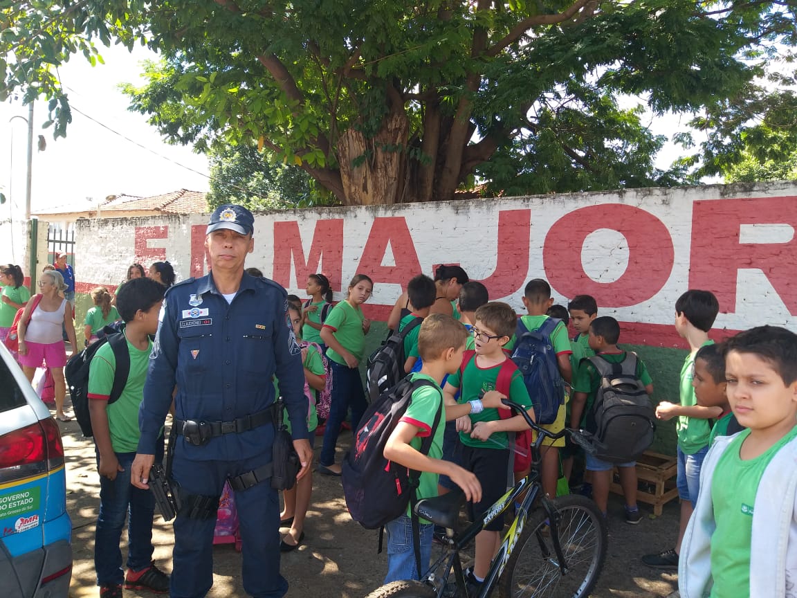 Na entrada e saída dos alunos, horário de maior fluxo de pessoas, a equipe de Patrulhamento Escolar permanece de frente as escolas (escolhidas alternadamente), onde coordenam o trânsito e orientam transeuntes sobre a faixa de pedestre e outras questões sobre segurança no trânsito.