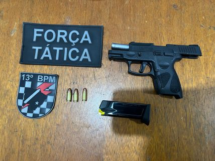 Policiais militares da Força Tática do 13º Batalhão realizaram, na noite de sábado (07), a apreensão e uma arma de fogo modelo pistola Taurus G2C Cal. 9mm. Veja mais detalhes!
