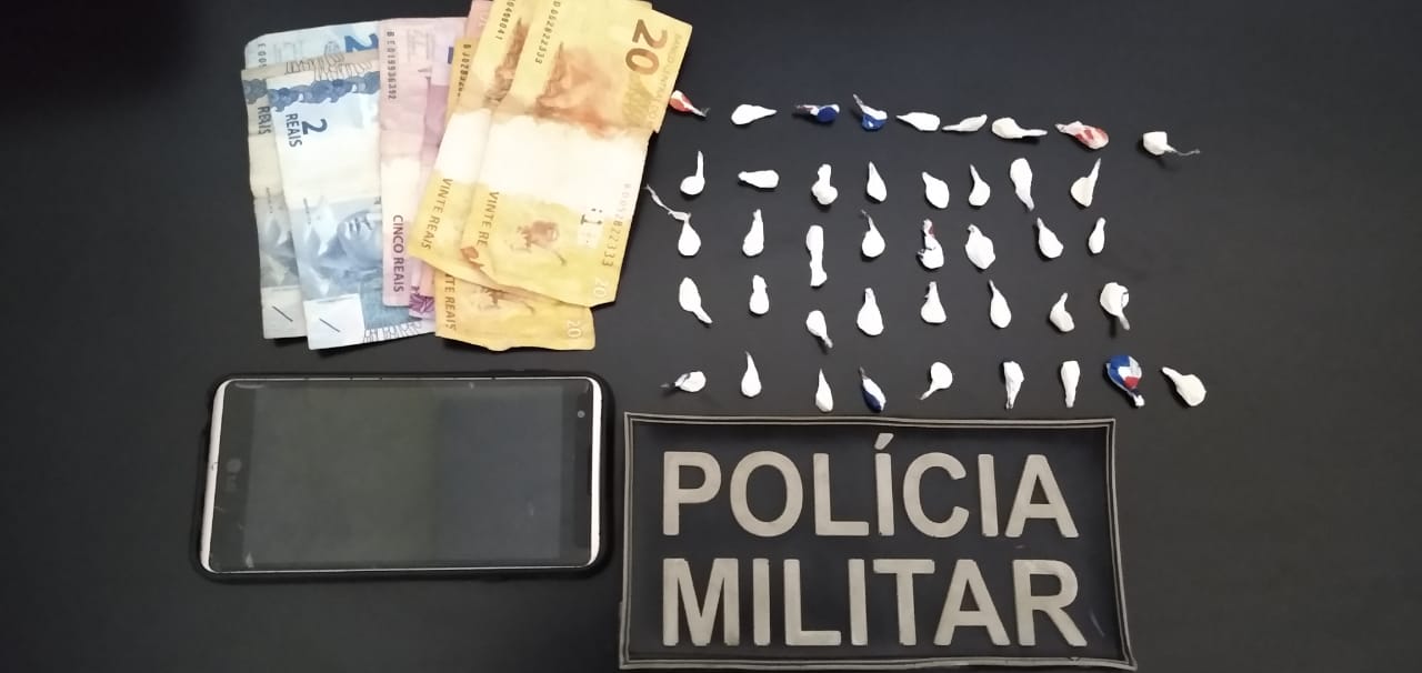 Os policiais realizaram abordagem aos cidadãos e constataram que o objeto lançado no terreno se tratava de um invólucro contendo 40 trouxinhas de crack e que o objeto dispensado ao solo pelo outro homem se tratava também de duas trouxinhas da mesma droga. Ao receber voz de prisão, o indivíduo de 18 anos disse que a droga era de sua propriedade e que vendia cada trouxinha pelo valor de R$ 10,00.