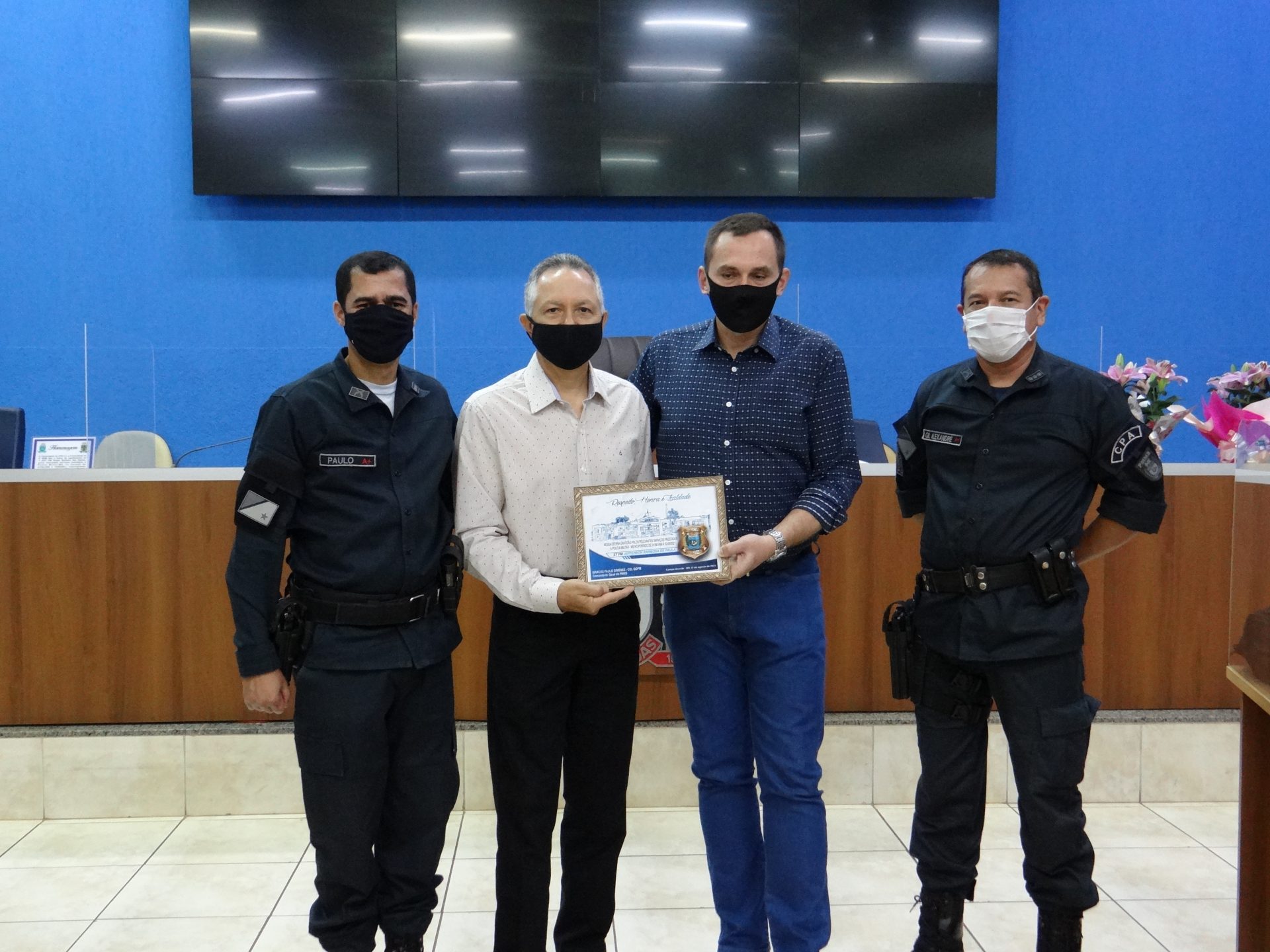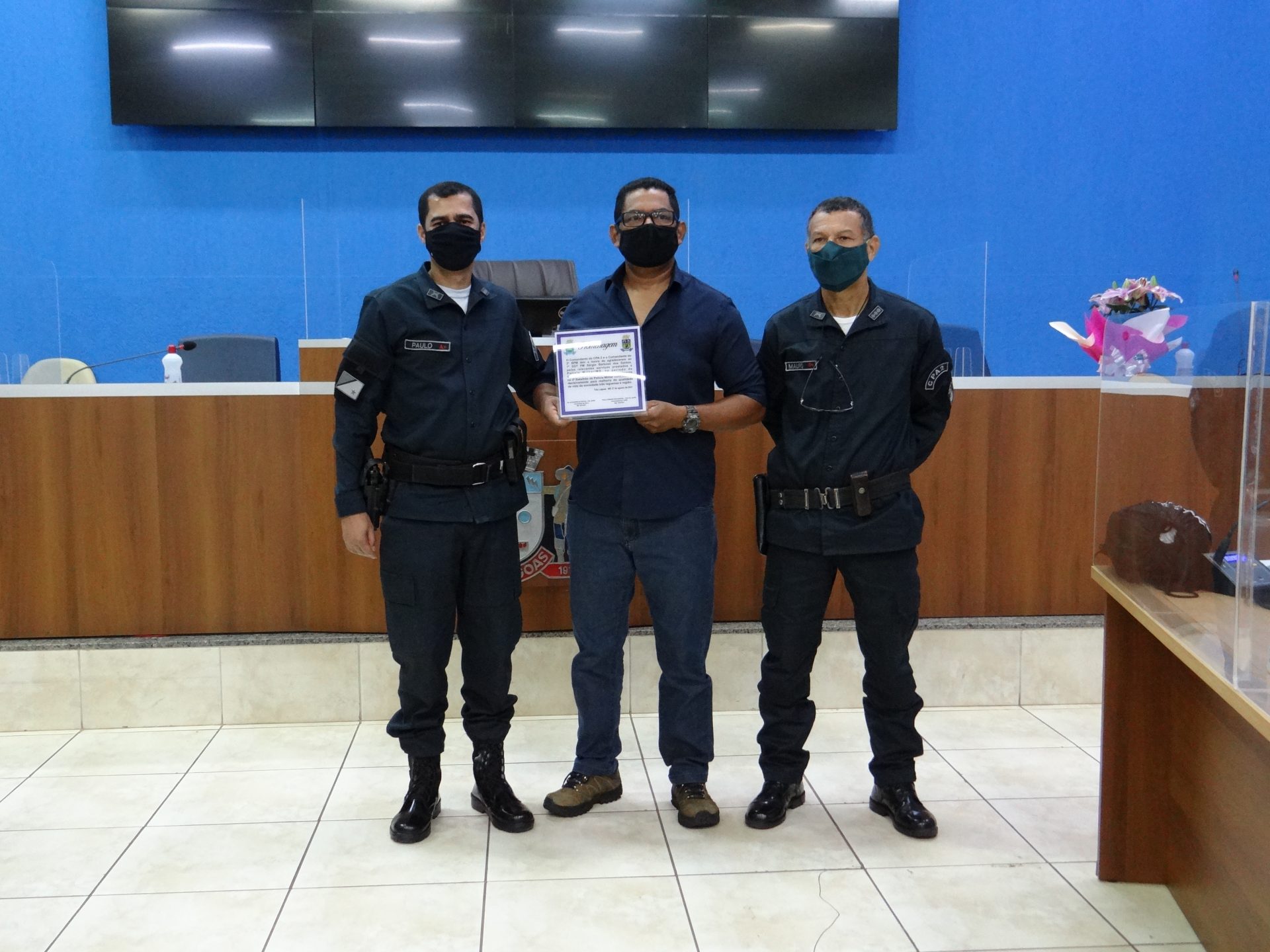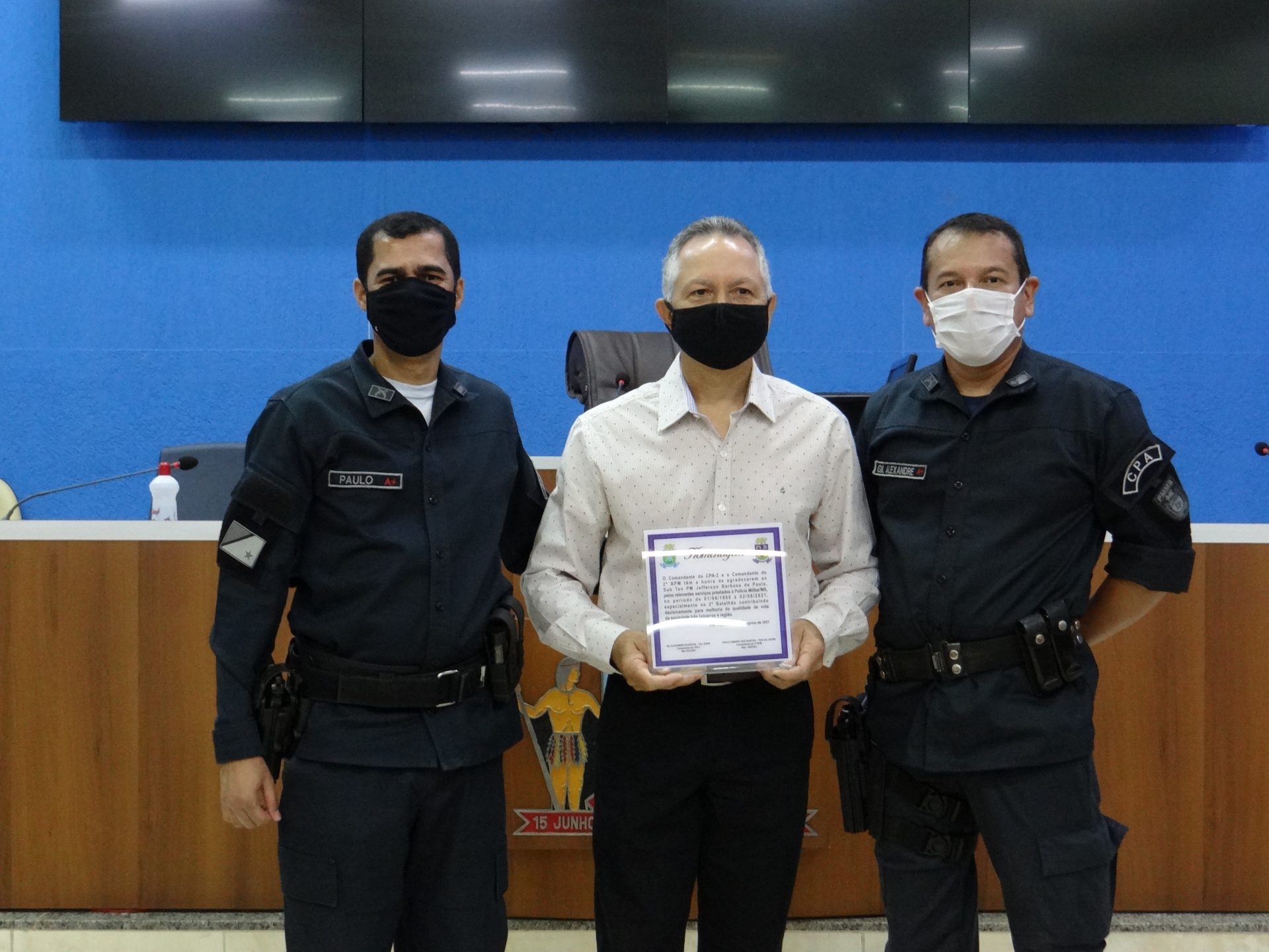 A solenidade contou com a presença do Comandante do CPA-2, Coronel Gil Alexandre da Rocha o qual juntamente com o Vereador Sargento Rodrigues participaram da entrega das homenagens aos agraciados.